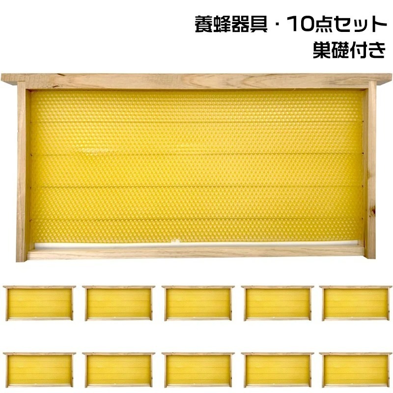 養蜂器具 完成巣枠 巣礎付き 10組 セイヨウミツバチ シート ラ式 スソ付き 巣礎 10枚 蜂の巣 蜜蜂 ミツバチ用 飼育 養蜂ツール 養蜂設備 養蜂用具 蜂蜜箱 杉材 家養蜂箱キット