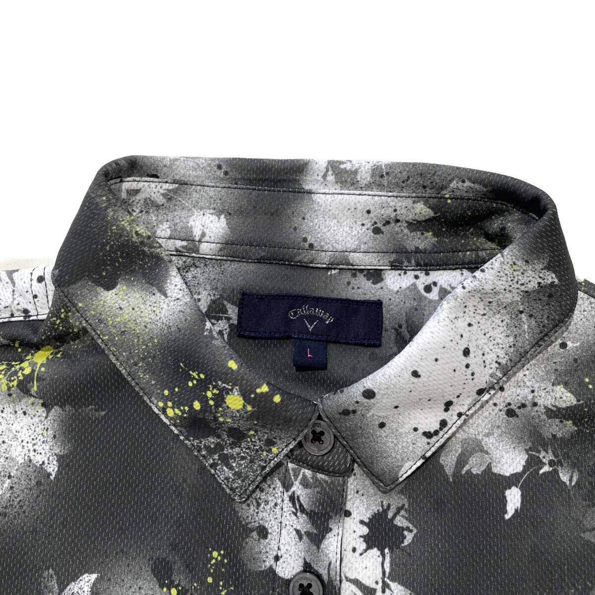 coco 中古【値下げ】キャロウェイ Callaway レディース 半袖ポロシャツ L グレー×白 花柄 ボタニカル ネコパケ発送可 99745