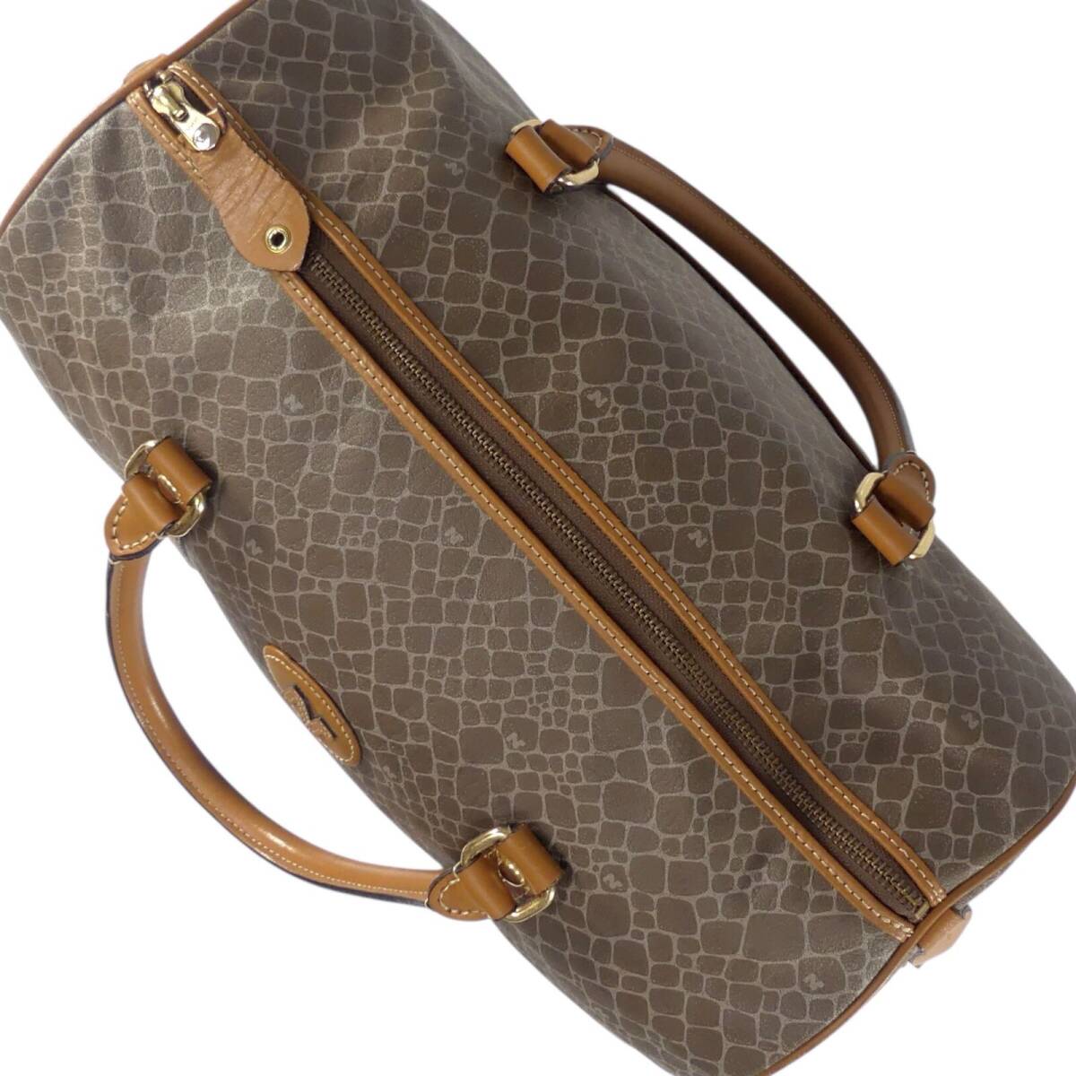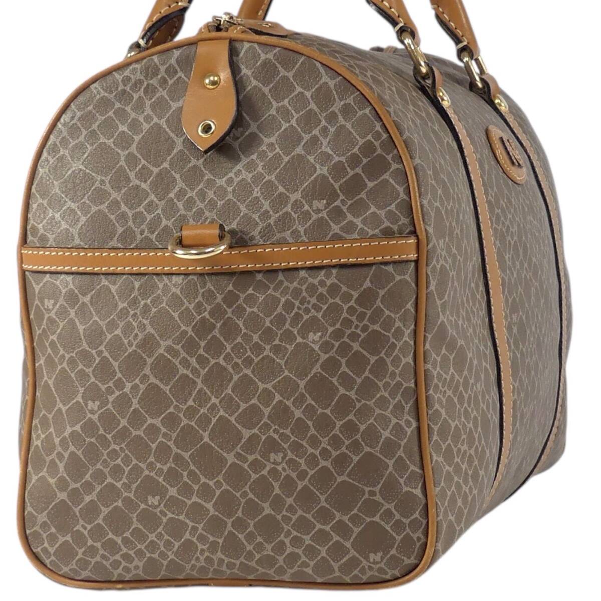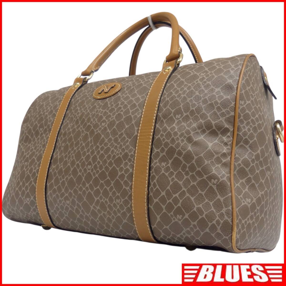 即決★NINA RICCI★レザーコンビ ボストンバッグ ニナリッチ 茶 総柄 本革 トラベルバッグ 本皮 旅行 カバン 出張 鞄 鍵付き