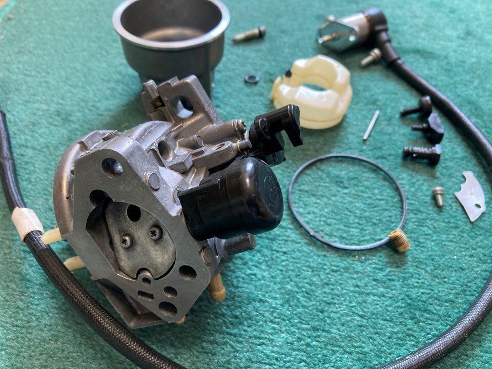 キャブレターを数年使用すると吹け上がりが鈍くなったり、高回転域でハンチングが発生します。そのような兆候のあるハイブリット除雪機はキャブレター分解整備品に交換すると正常に吹け上がるようになります。