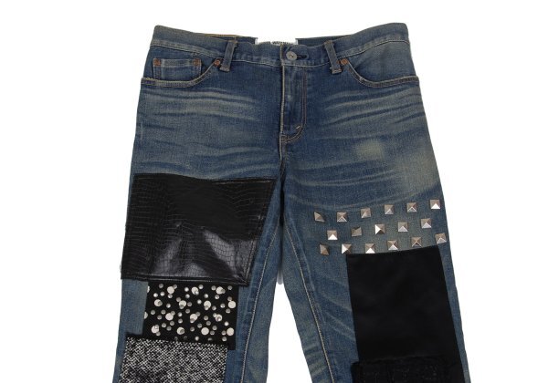 | ジュンヤワタナベ コムデギャルソン デニムJUNYA WATANABE COMME des GARCONS denim 異素材切替ストレートデニムパンツ インディゴ黒白M |