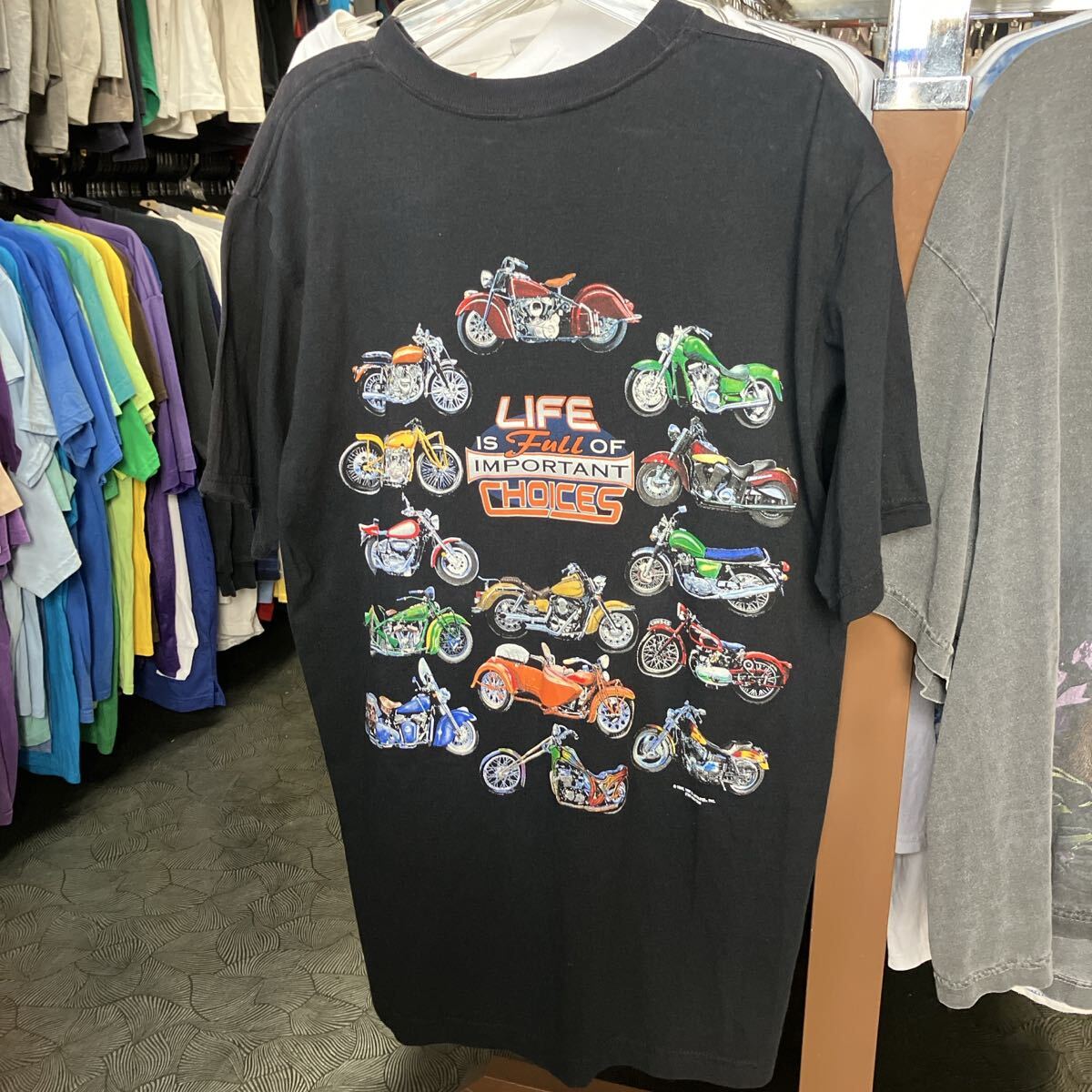 LIFE IS FULL OF IMPORTANT CHOICES men's メンズ トップス tシャツ 半袖 バイク オートバイ イラスト ヴィンテージ ビンテージ アンティーク レトロ