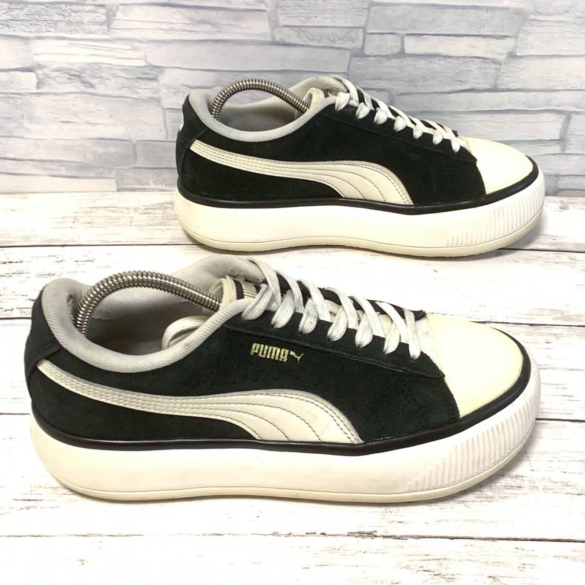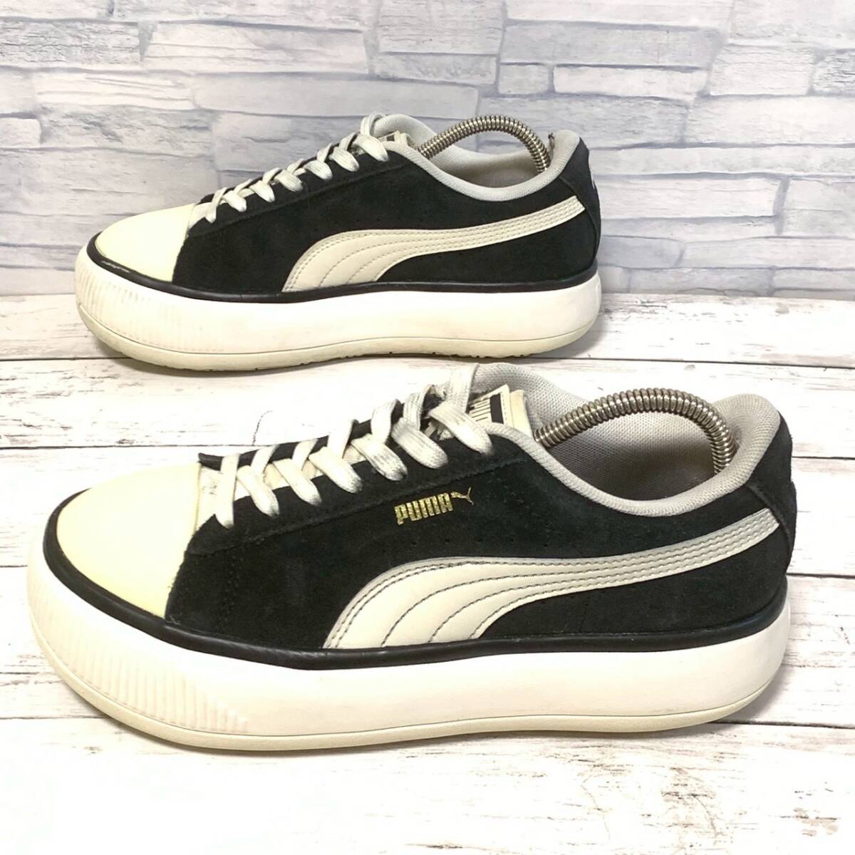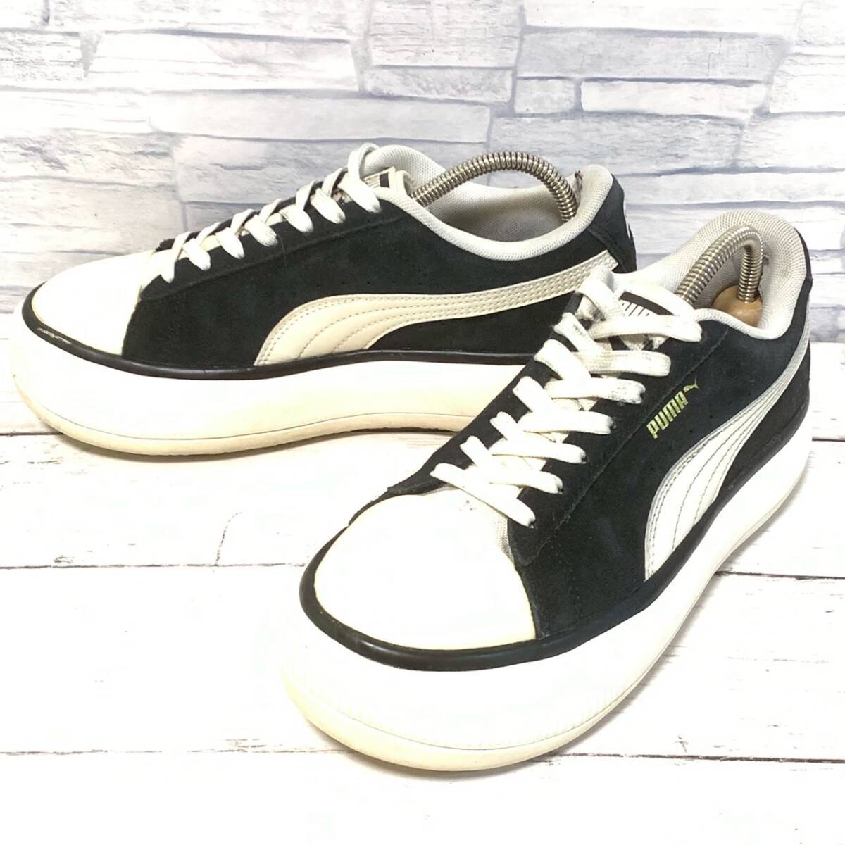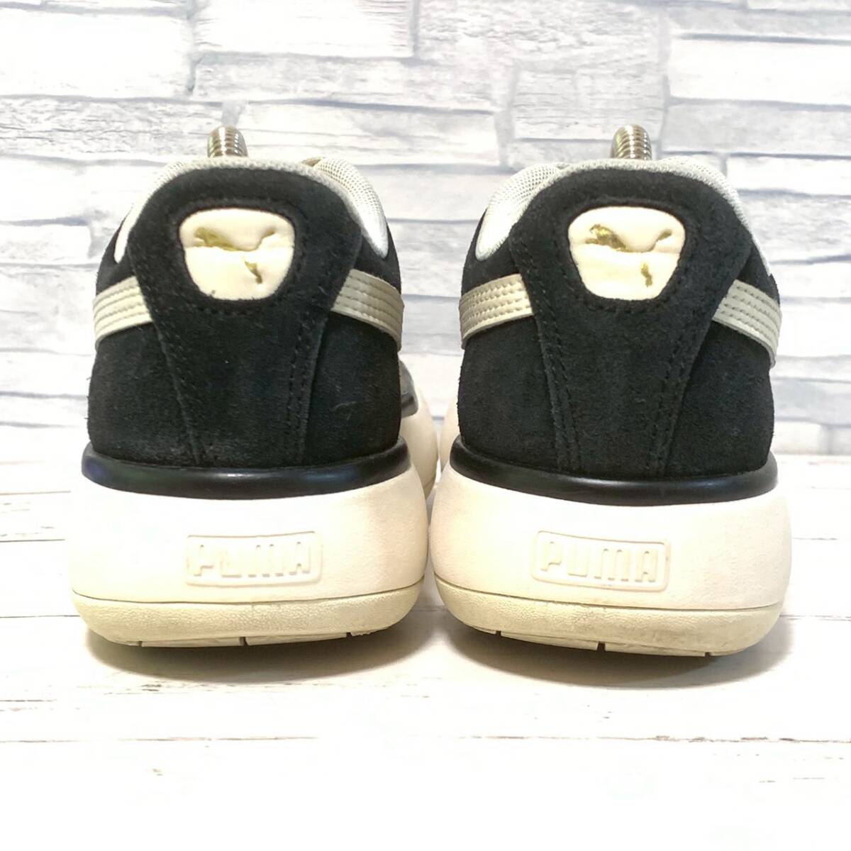 R9065bA 美脚効果!!厚底◎ PUMA プーマ 23cm スウェード スニーカー シューズ レディース ウィメンズ ブラック 黒 古着