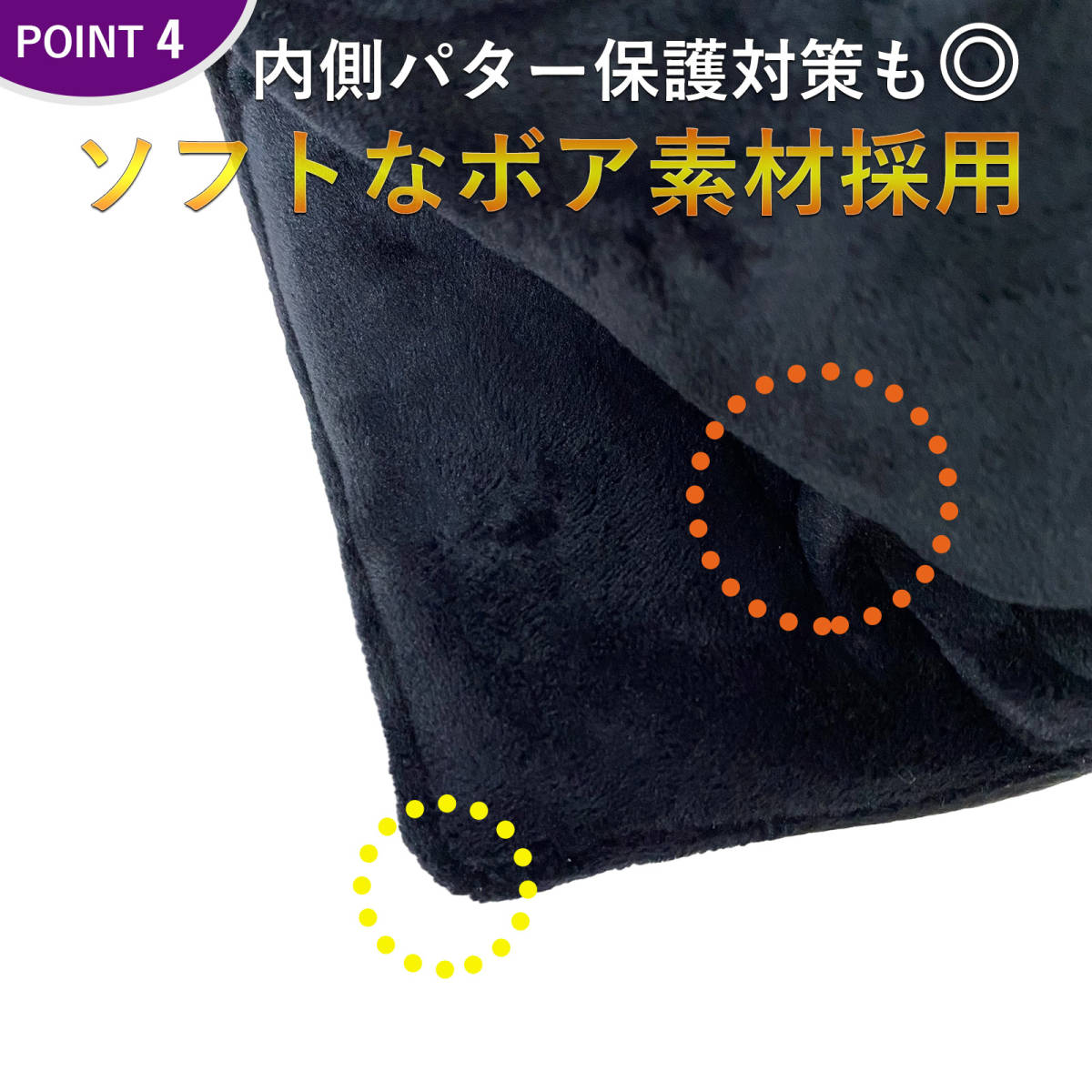内側は柔らかいボア素材になっていますので、大切なパターを傷や汚れから守ります。