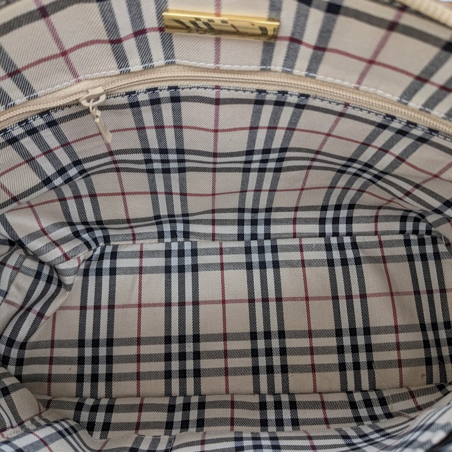 BURBERRY バーバリー レザー ワンショルダー ハンドバッグ 裏地ノバチェック ベージュ系