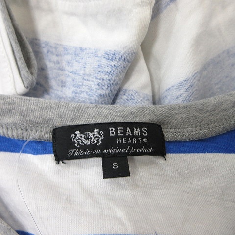 未使用品 ビームスハート BEAMS HEART Tシャツ カットソー Vネック ボーダー 半袖 刺繍 S 白 ホワイト /YI メンズ