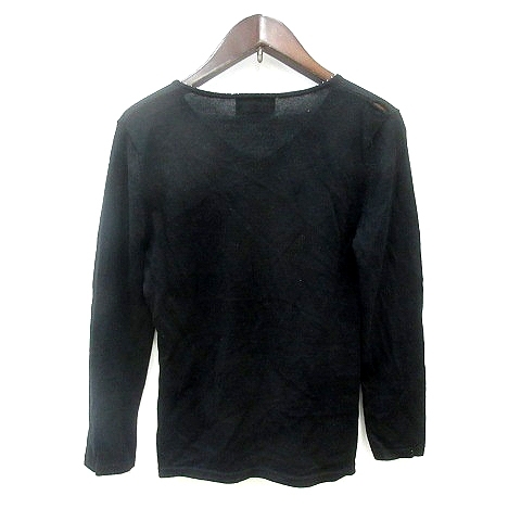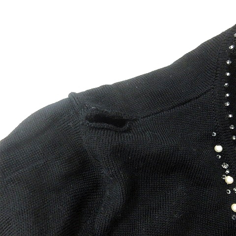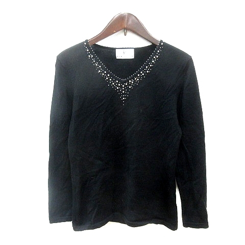 クミキョク 組曲 KUMIKYOKU ニット カットソー Vネック 長袖 ビーズ ウール 2 M 黒 ブラック /MN レディース