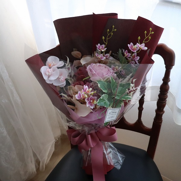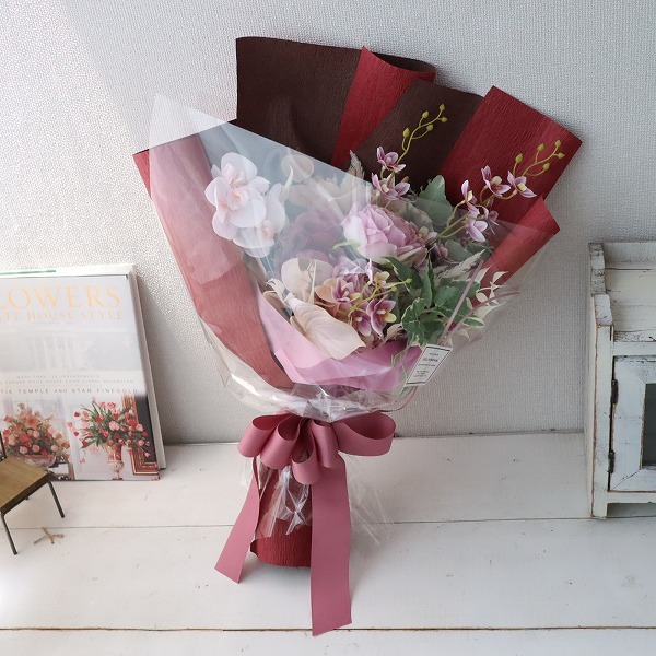 想いを込めて贈る花束 胡蝶蘭 シャビー スモーキー モーブ 造花 送別 お祝い 582