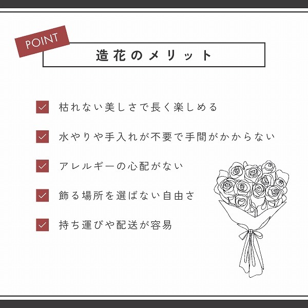 水やりの手間がなく、アレルギーの心配も少ないため、どなたにも安心して贈れます。