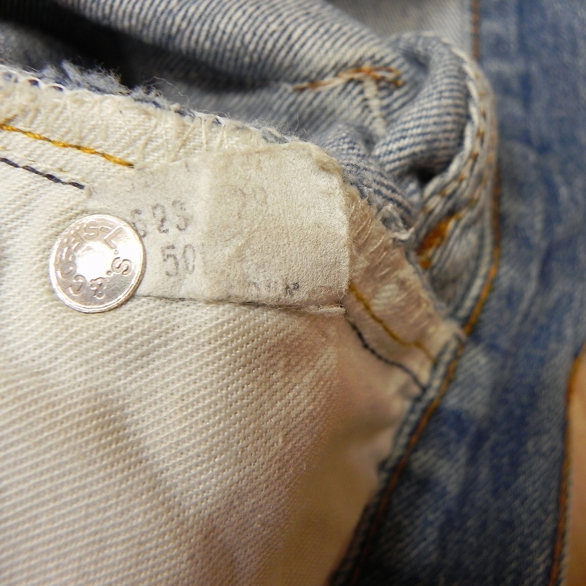 ●あくまでも古着のため、ノークレームノーリターンでお願いいたします。使用感がございます。 内タグがリベットに打ち込まれており、ある意味レアだと思います。 おそらく89年製かと思います。薄汚れや細かな擦れなどがあり、古着らしい色落ちした味の出た雰囲気です。 裾はシングルステッチで裾上げされており、擦れがございます。
