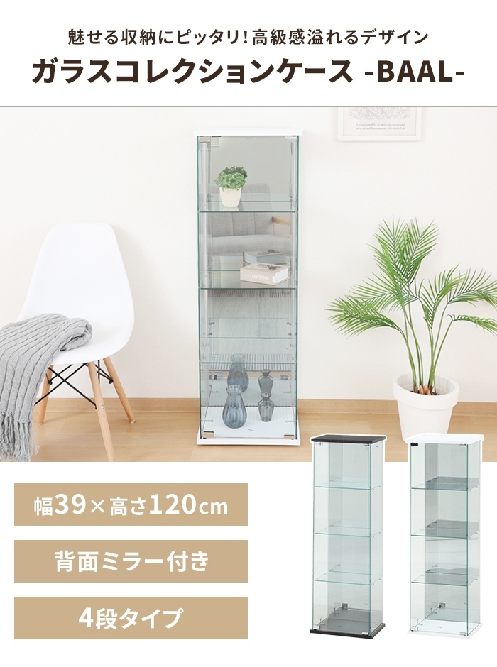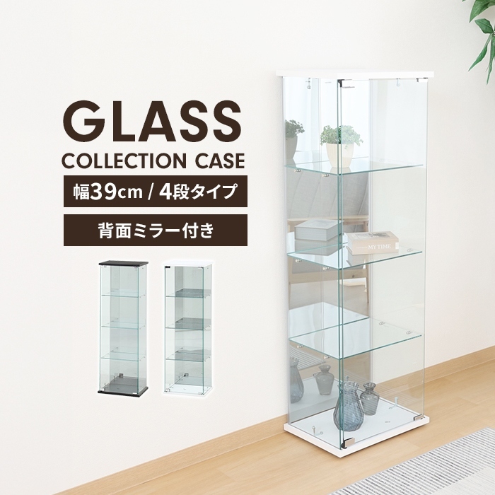 コレクションケース 4段 ガラス 扉付き 背面ミラー付き 幅39 奥行30 高さ120 ディスプレイ 推し活棚 収納家具 シンプル 収納棚 収納ラック ガラスケース 推し活収納ラック フィギュア棚 飾り棚 見せる収納 ガラス扉 鏡付き インテリア フィギュア アクスタ 推し活 リビング 寝室 ワンルーム ブラック ホワイト |