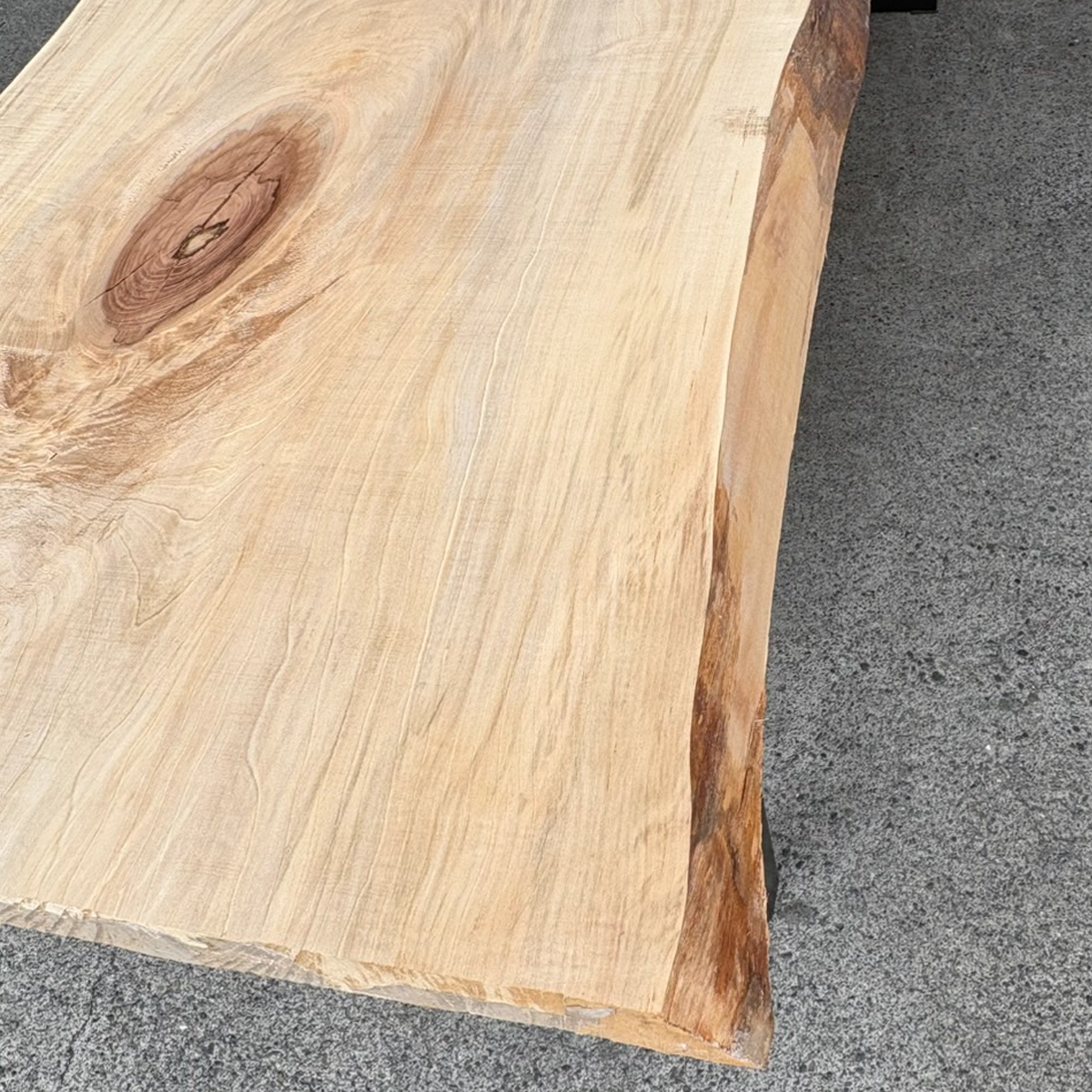 | 【栃(トチ) 性質】 | 【栃(トチ) 性質】 栃(トチ)は、北海道や東北地方を中心に、日本全土に生息する落葉広葉樹です。 中国でも生息していることが確認されています。木の質は、軽軟で加工がし易い 無垢材であることから、一枚板以外にも、彫刻材などとして利用されることが 多い無垢材です。 白く淡い色味が近年高い人気を誇る一枚板です。 お部屋との合わせやすさから人気となり、相場も上がっています。 |