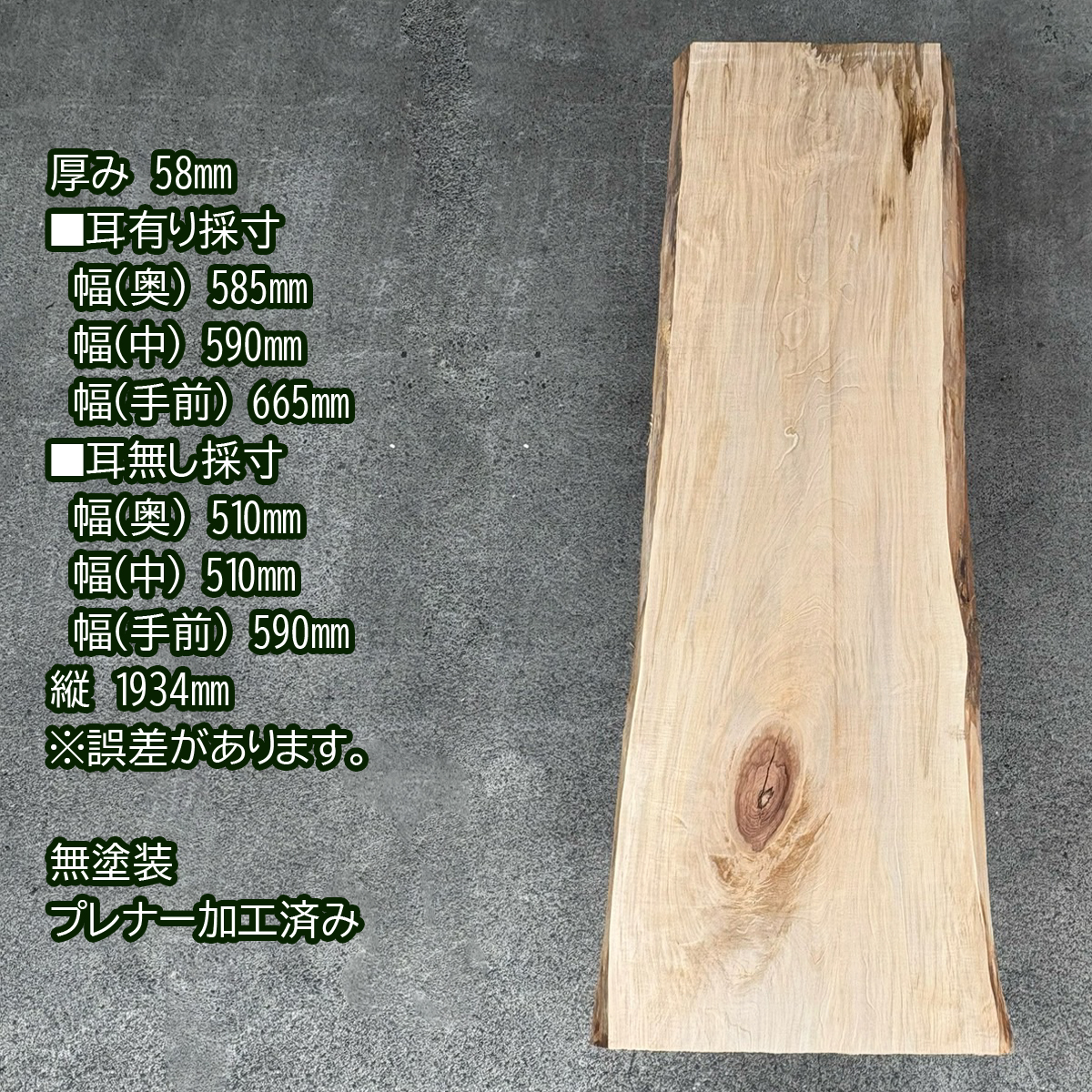 | 【サイズ】 | 厚み 58㎜ ■耳有り採寸 幅(奥) 585㎜ 幅(中) 590㎜ 幅(手前) 665㎜ ■耳無し採寸 幅(奥) 510㎜ 幅(中) 510㎜ 幅(手前) 590㎜ 縦 1934㎜ 1枚 ※若干誤差がある場合があります。 |