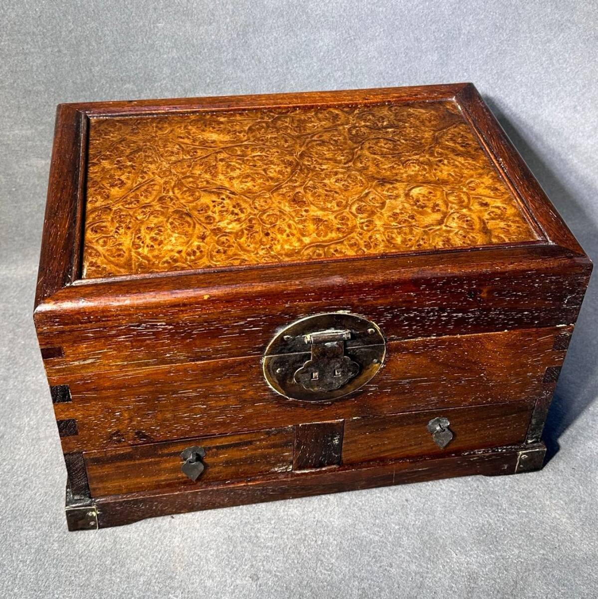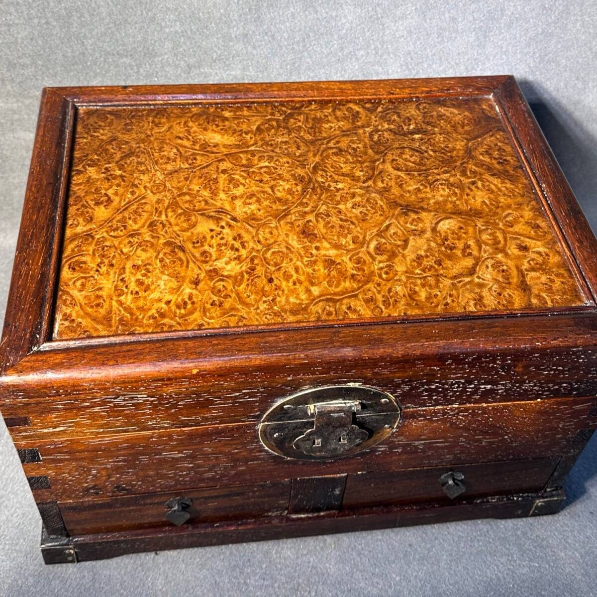 唐物 清 花梨木 モザイク金絲 楠木首飾百寶箱 木製 極細工 古美術品 時代物 中国古玩 骨董品 D67