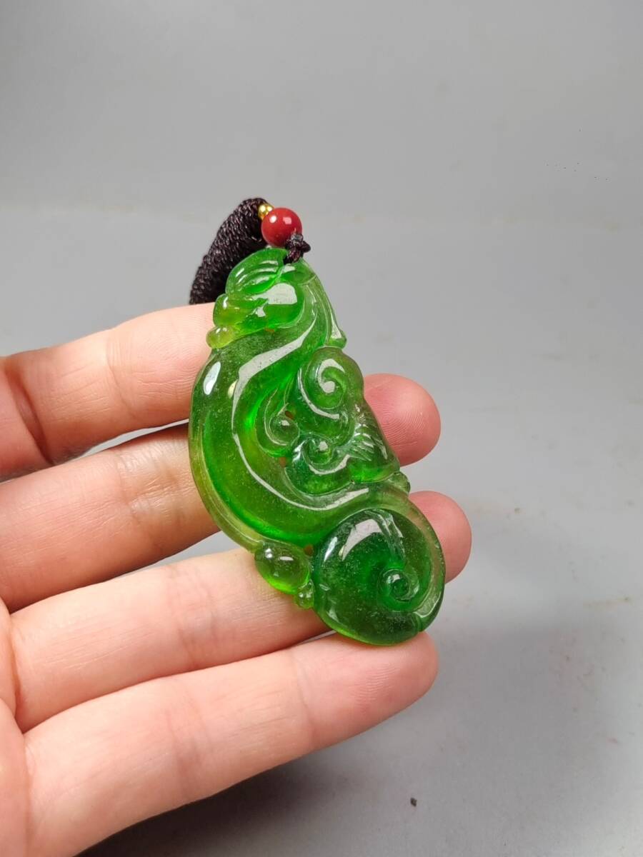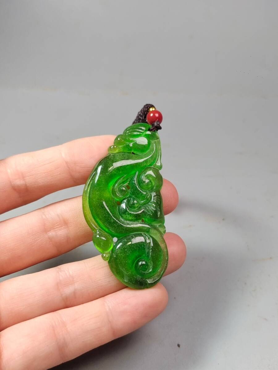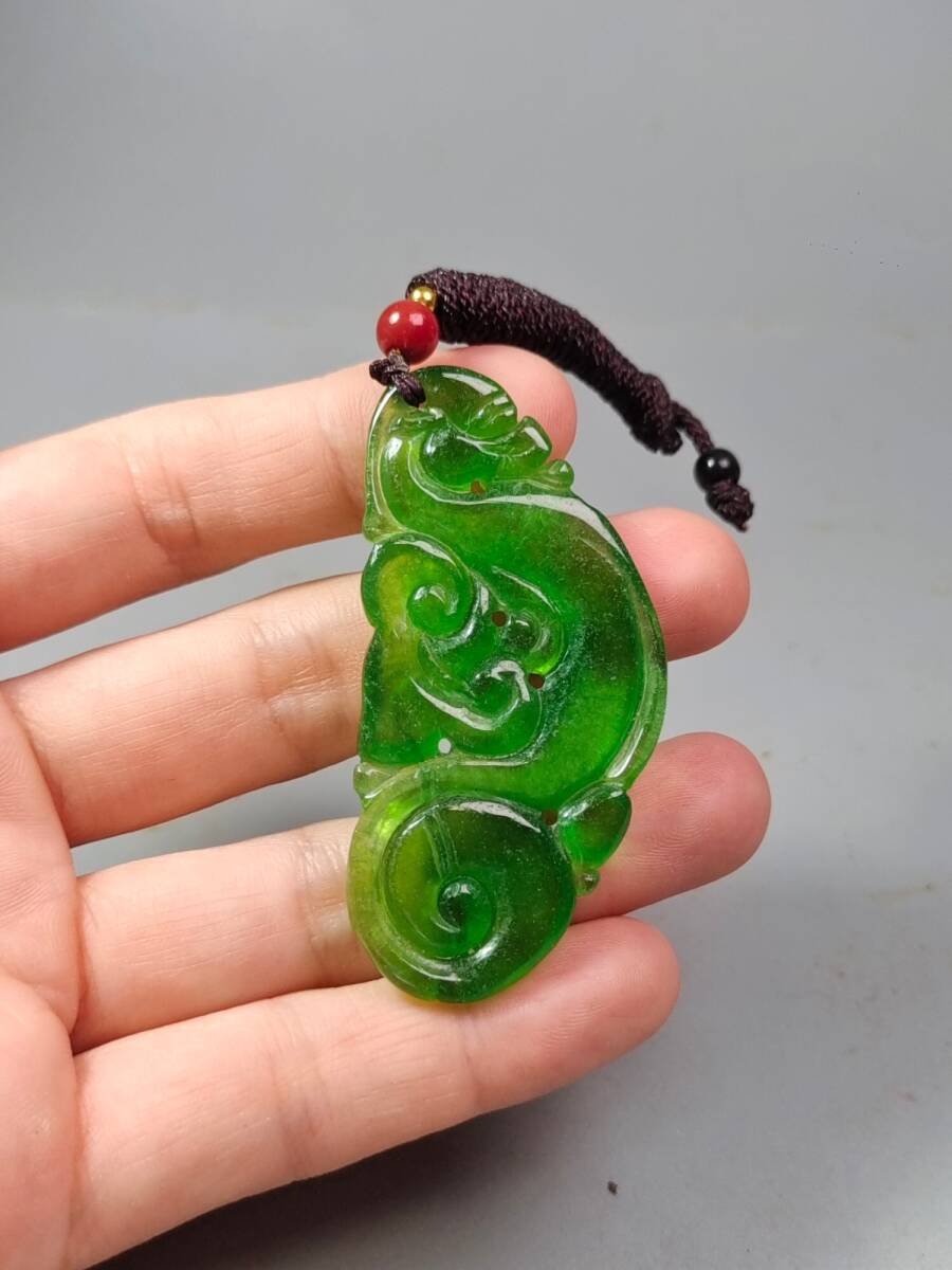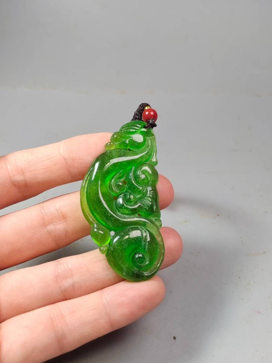 『清・翡翠細密彫・沁色自然・福寿如意ペンダント・根付・裝身具』極細工 置物 古賞物 中国古玩 中国古美術