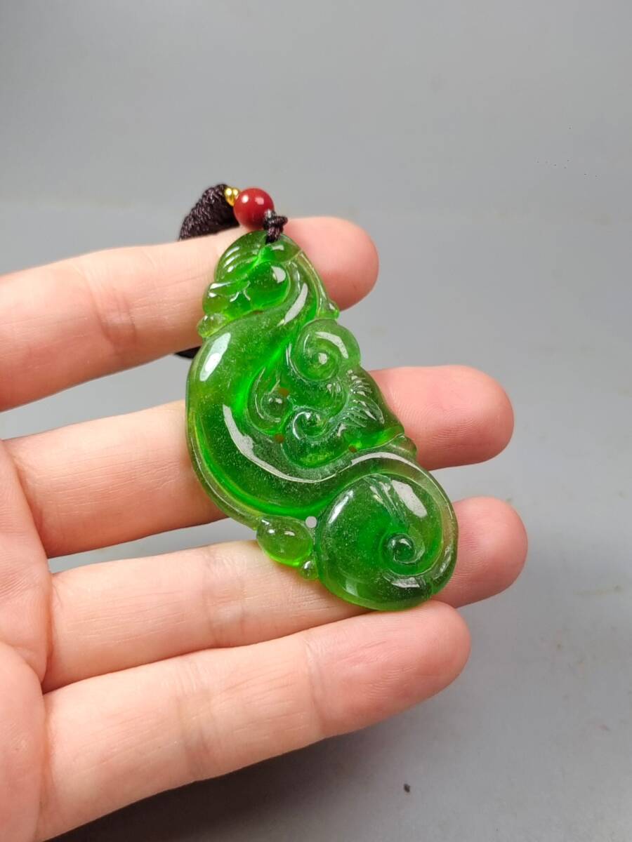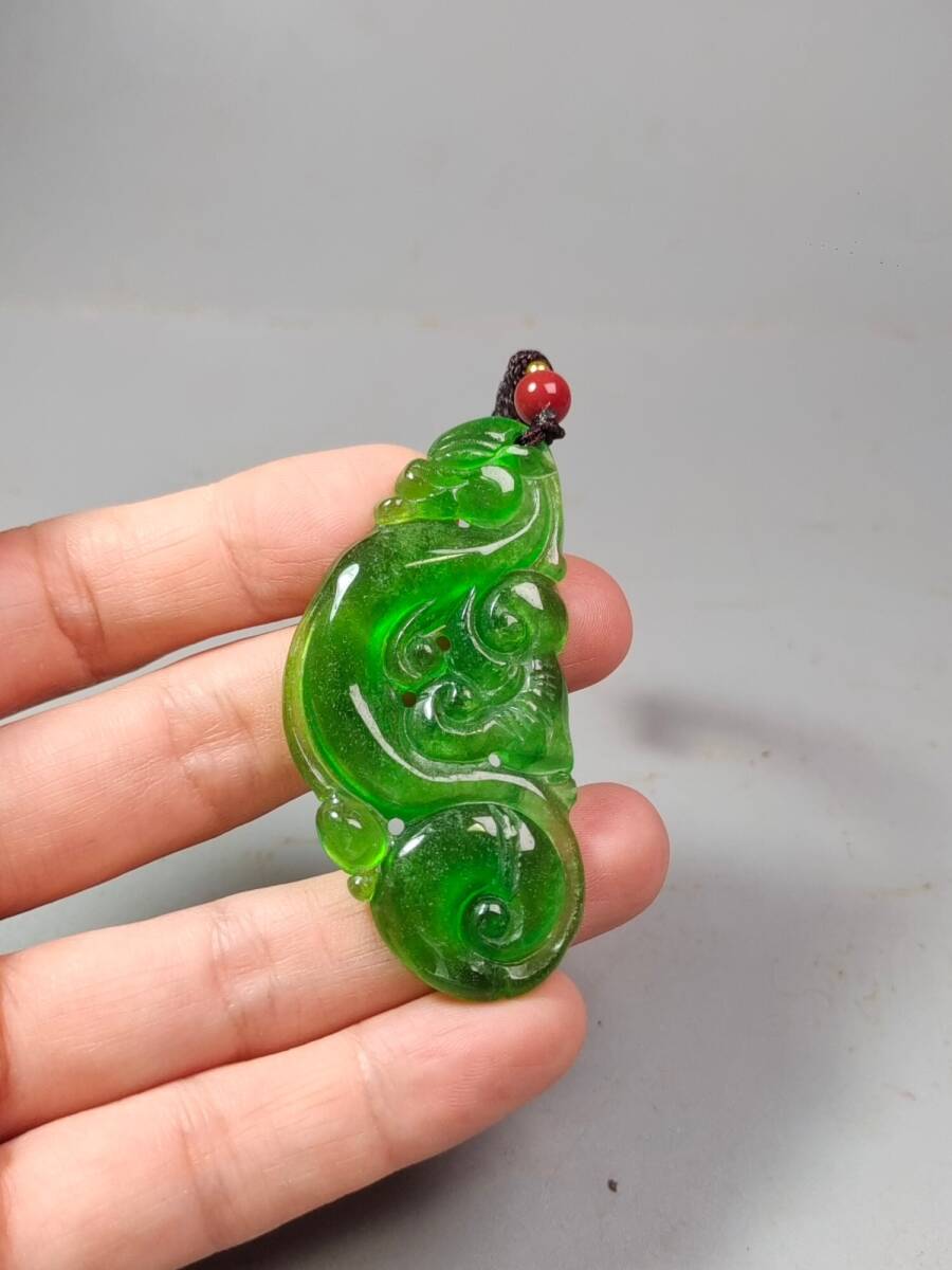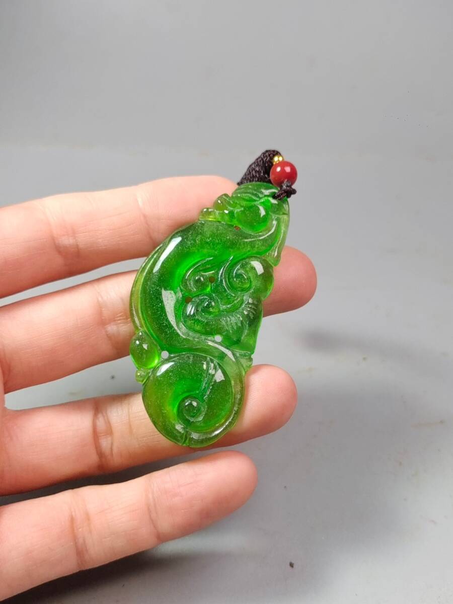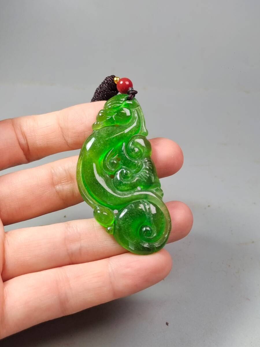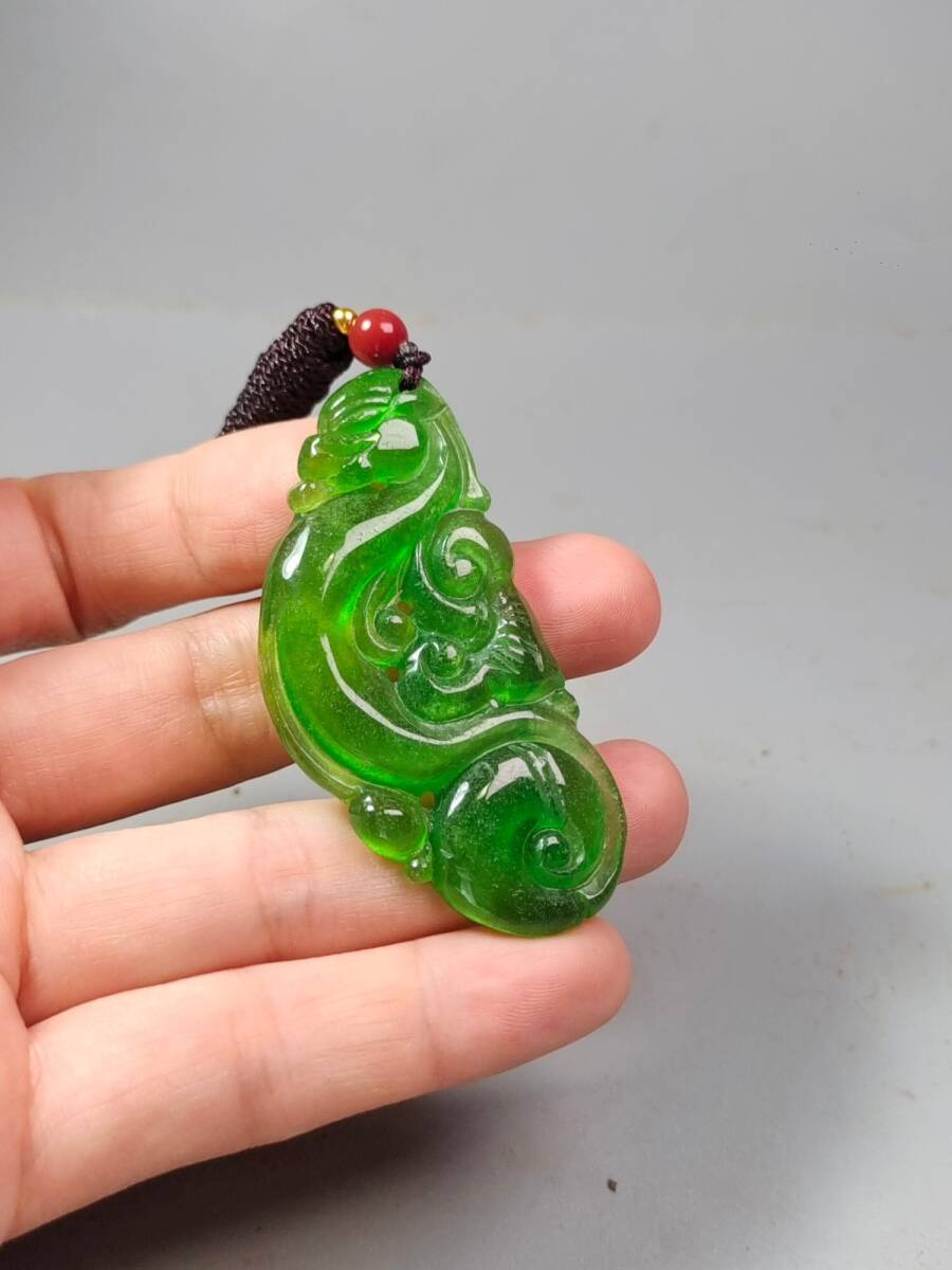 『清・翡翠細密彫・沁色自然・福寿如意ペンダント・根付・裝身具』極細工 置物 古賞物 中国古玩 中国古美術
