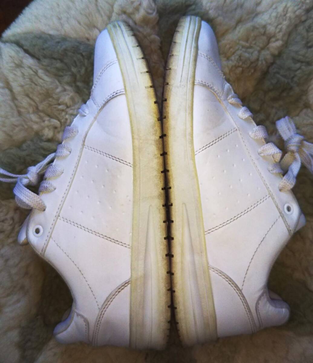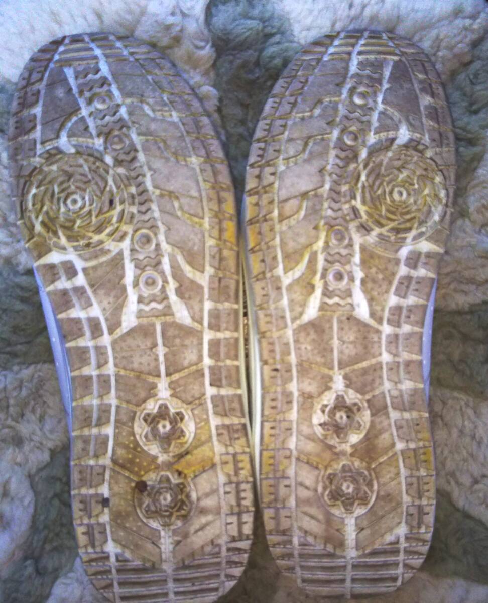 ソールサイド・インソールに汚れ、プリントロゴ剥げ、ソールの減りありと使用感あるも、減りは少なく、アッパーには特に目立つ傷み・汚れない状態です。(状態説明は外観のみの個人的感想で、品質・機能・動作等を保証するものではありません)
