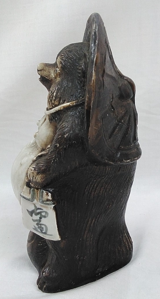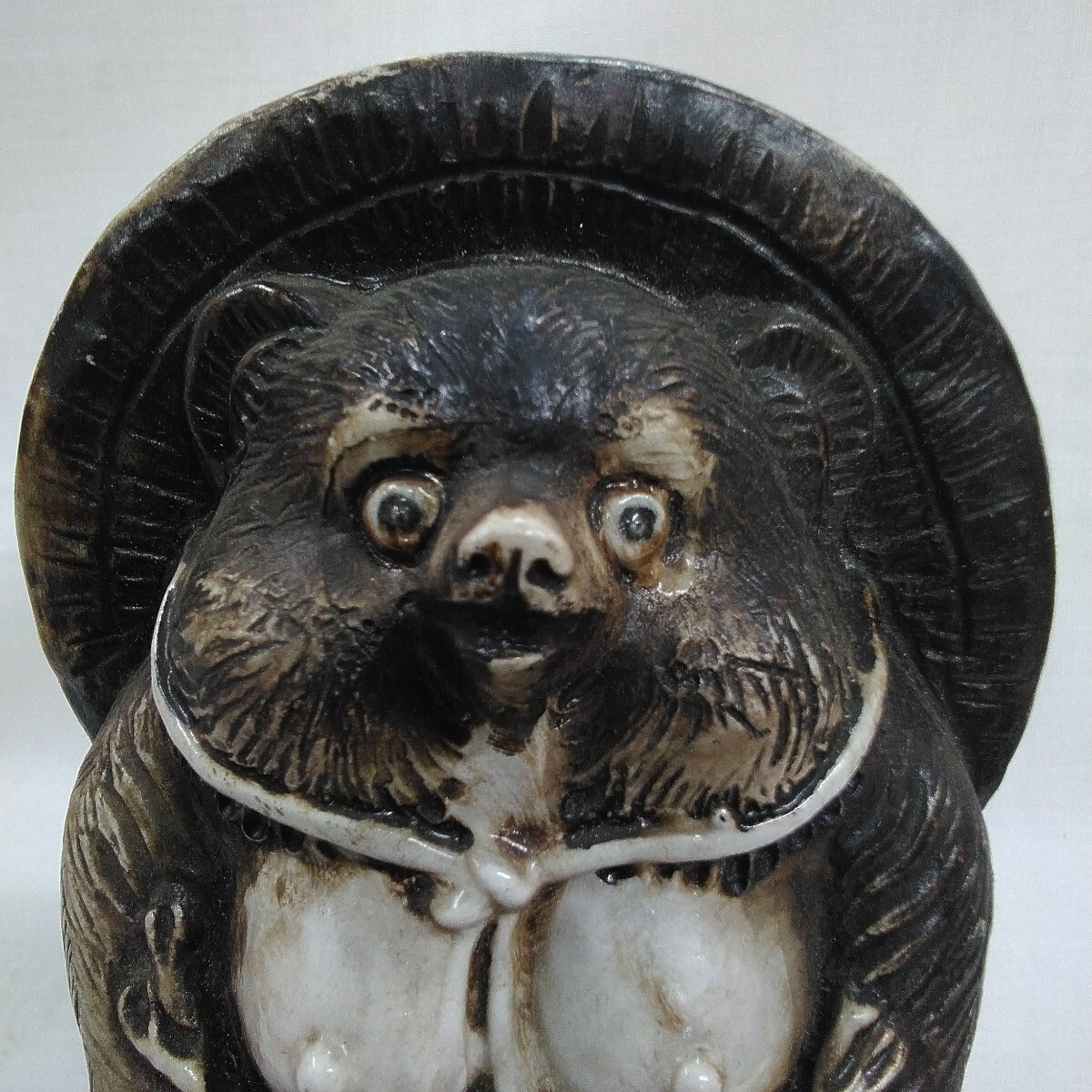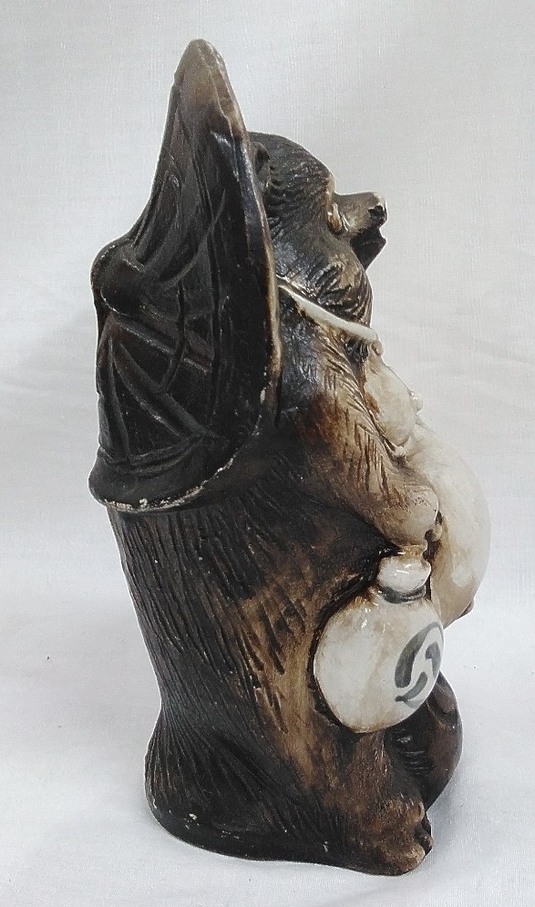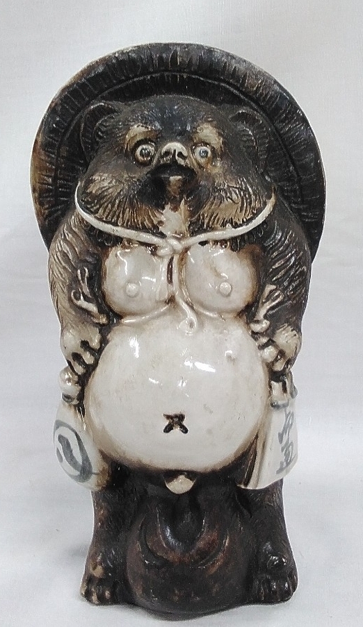 たぬきの置物 信楽焼、 机の上に置いて楽しむサイズです。高さ約22cm