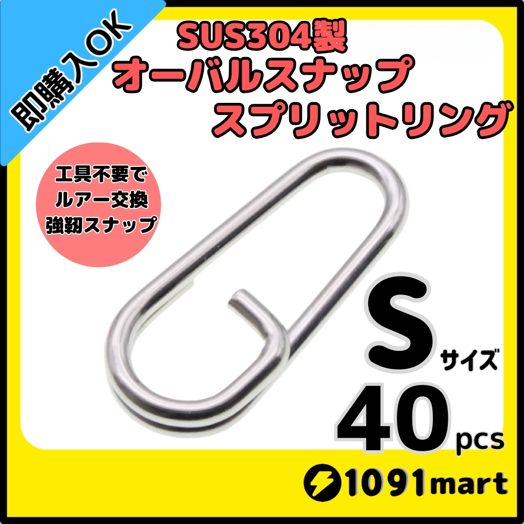 【送料無料】SUS304 ステンレス製 オーバルスナップスプリットリング Sサイズ 40個セット ジギング 青物 SLJ 工具不要で楽々ルアー交換
