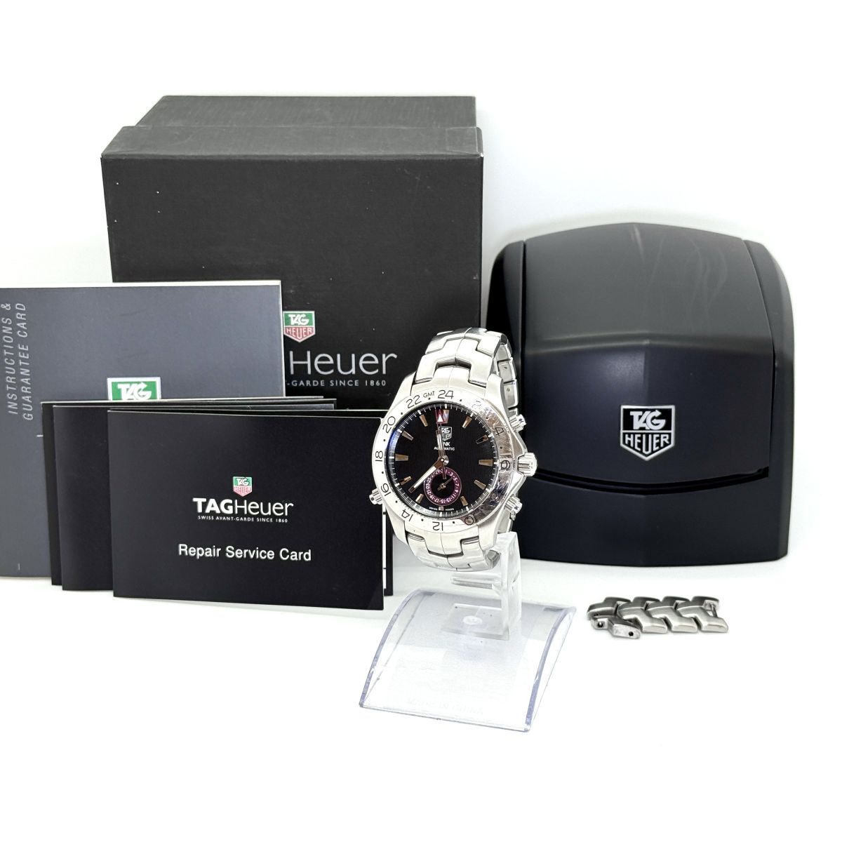TAG HEUER タグ・ホイヤー リンク GMT WJF2115.BA0587 VK3565 自動巻き ブラック文字盤 メーカー修理サービスカード(2012年5月)