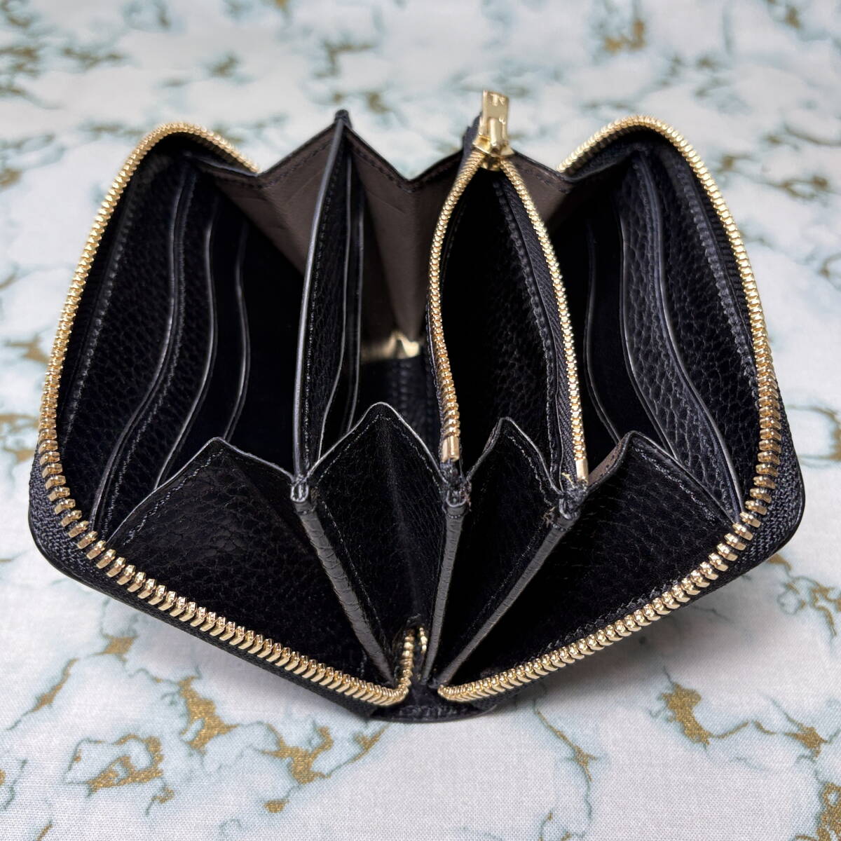 仕様:マチ付き札入れ×3・マチ付き小銭入れ×1・カードホルダー×9(内3枚は奥まで収納)