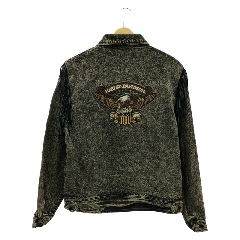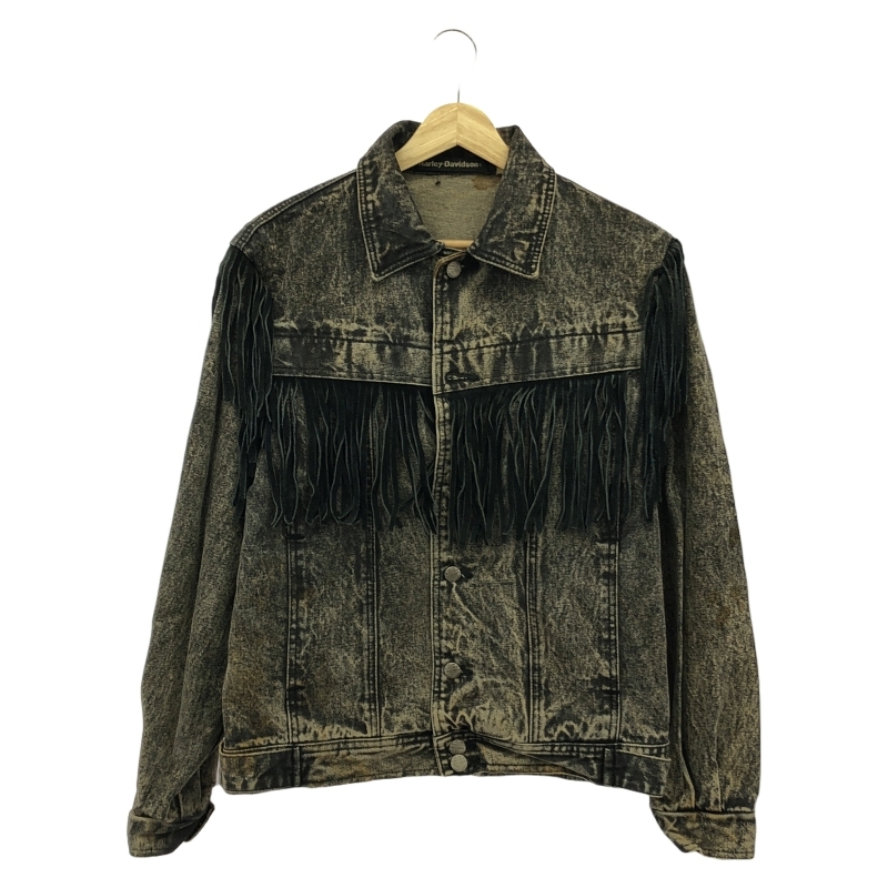 | 209999423202)オールド Harley Davidson フリンジデニムジャケット サイズ不明 黒 |