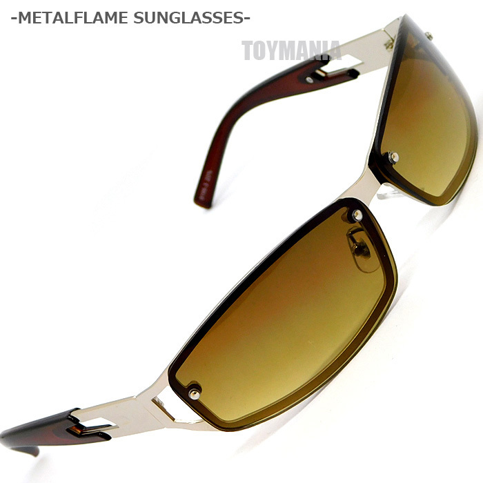 送料無料 オラオラ系 メタルフレーム サングラス メンズ バイカーズ スクエア UVカット ロック系 オシャレ 伊達眼鏡 ブラウンレンズ 新品☆