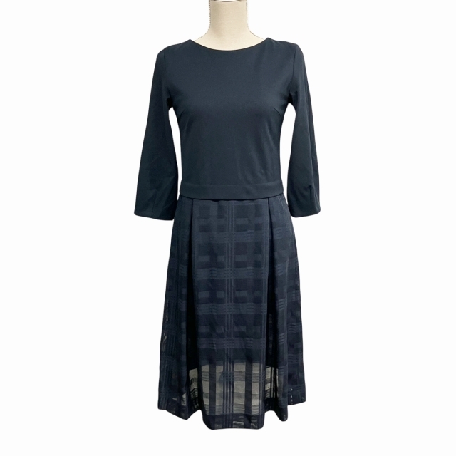 ジェイプレス J.PRESS 近年モデル 美品 ワンピース ロング 長袖 切替 紺 ネイビー P5 約XS-S ■GY09 レディース