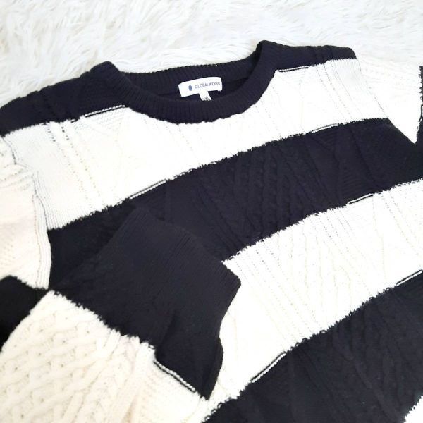 美品 GLOBAL WORK グローバルワーク ケーブル編み 綿 ニット  XXL(140~150㎝) キッズ 子ども 黒 ベージュ