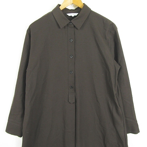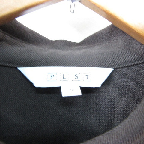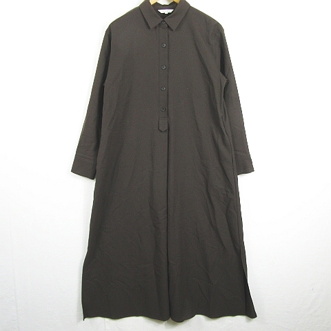 プラステ PLST シャツ ワンピース ロング丈 長袖 Aライン ストレッチ レーヨン 毛 S ダークブラウン kz12360 レディース