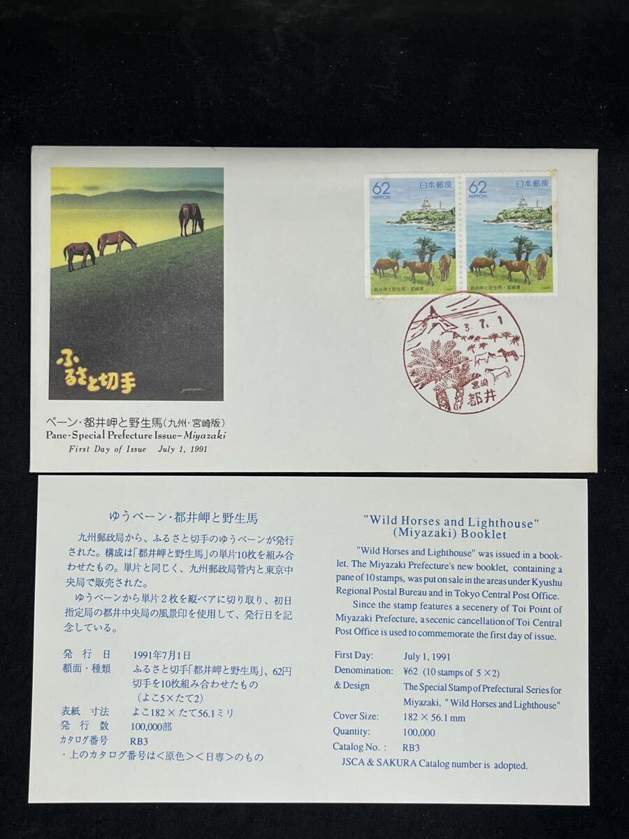 平成3年7月1日発行 ふるさと切手ペーン 「都井岬と野生馬」(宮崎)