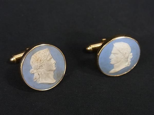 WEDGWOOD ウェッジウッド ジャスパー カメオ カフス カフリンクス アクセサリー ブルー系×ゴールド系 DE7047