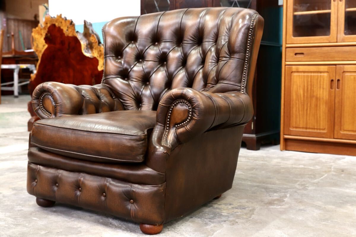 イングランド ファーリントンの家具ブランド、centurion furnitureによるクラシック調のシングルソファです。格式高い本革の色合い、経年変化が高級感を醸し出す、上質なプロダクトです。座面はやや硬め。