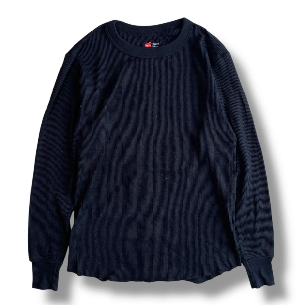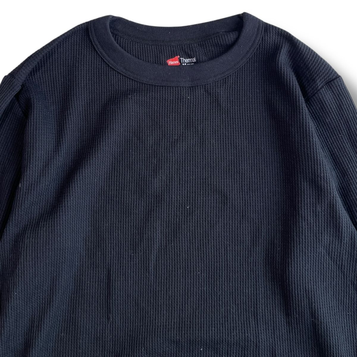 国内正規品★ Hanes ヘインズ サーマル ロングスリーブ Tシャツ 長袖 黒 Mサイズ カットソー Thermal クルーネック トップス 無地 古着