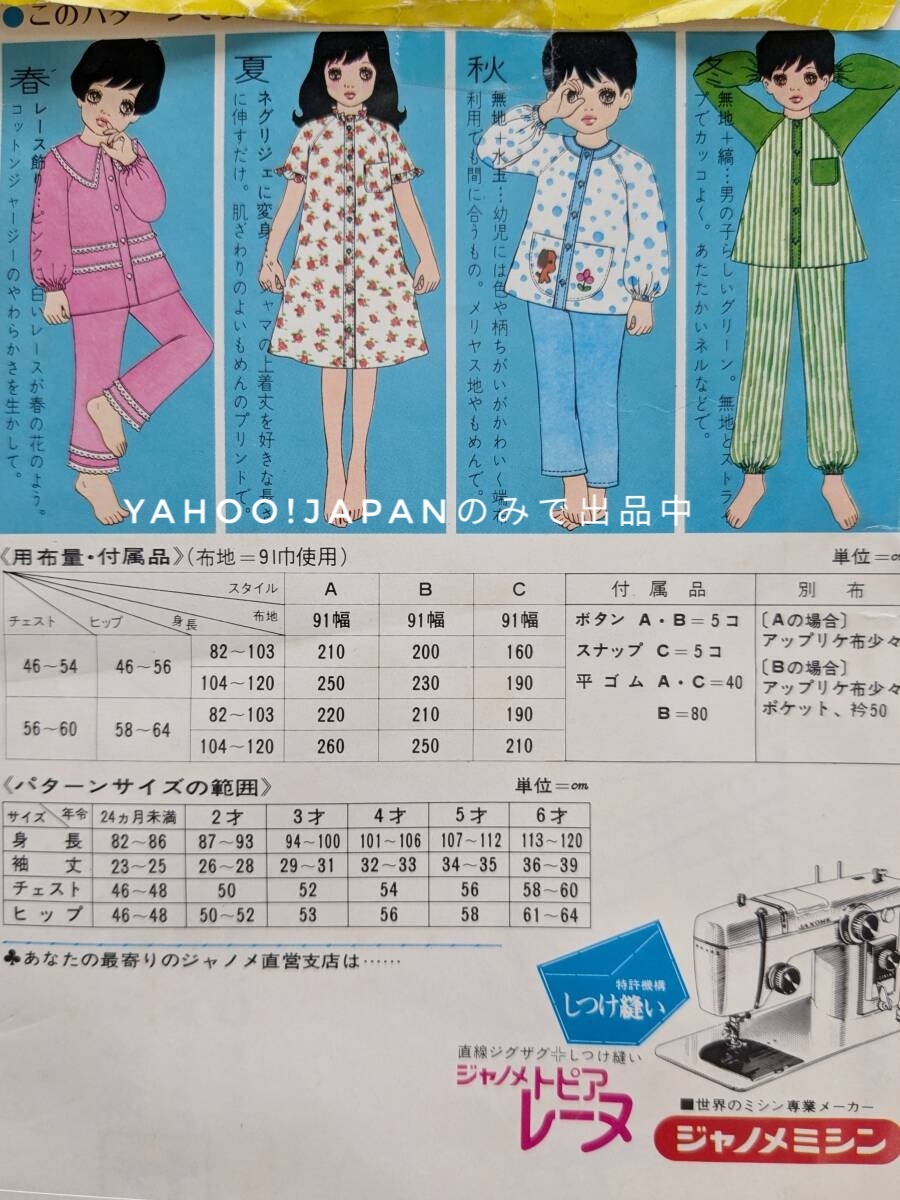 昭和レトロ ジャノメフィットパターン 男女幼児 パジャマ 型紙 パターン レトロ  レトロ子供服 ハンドメイド ヴィンテージ