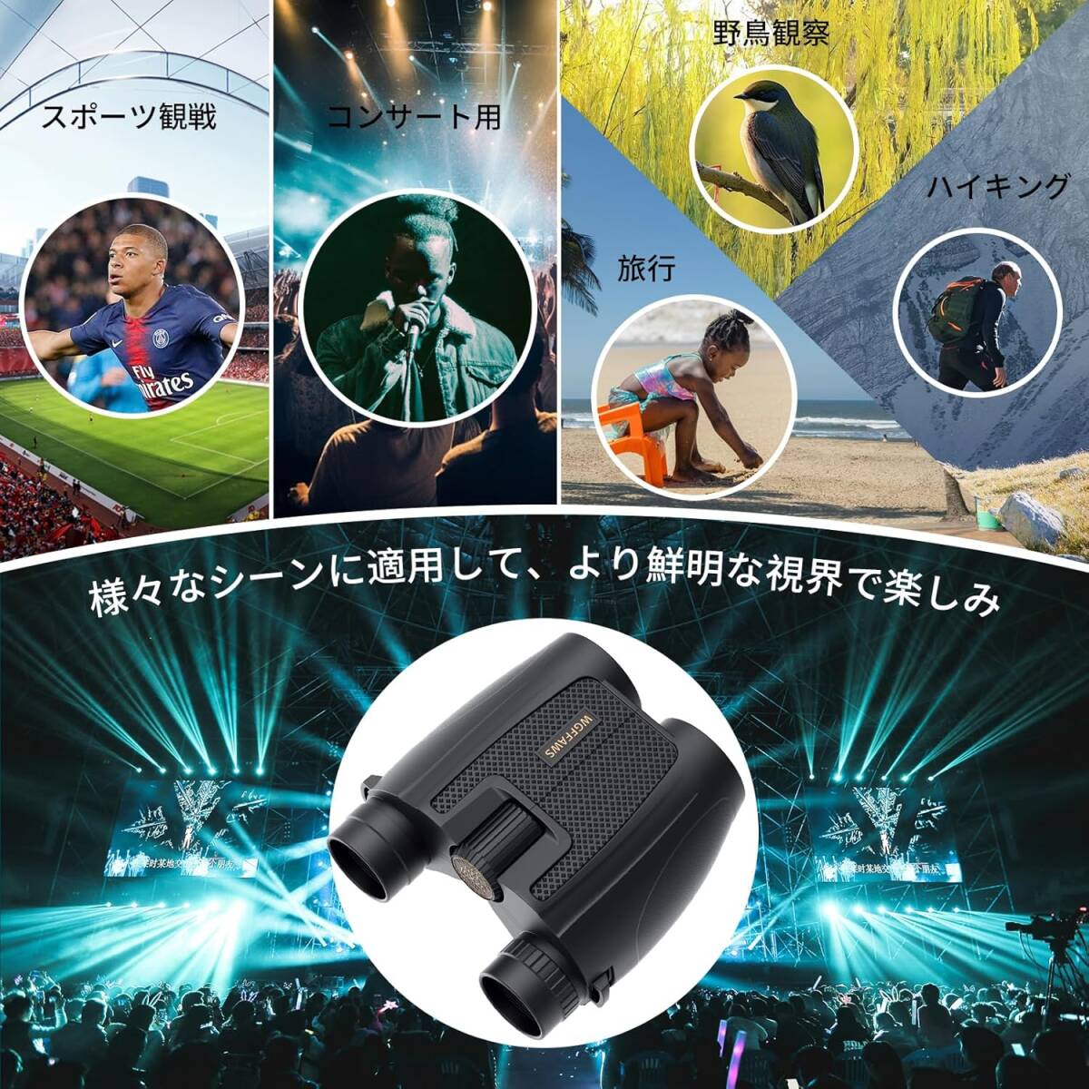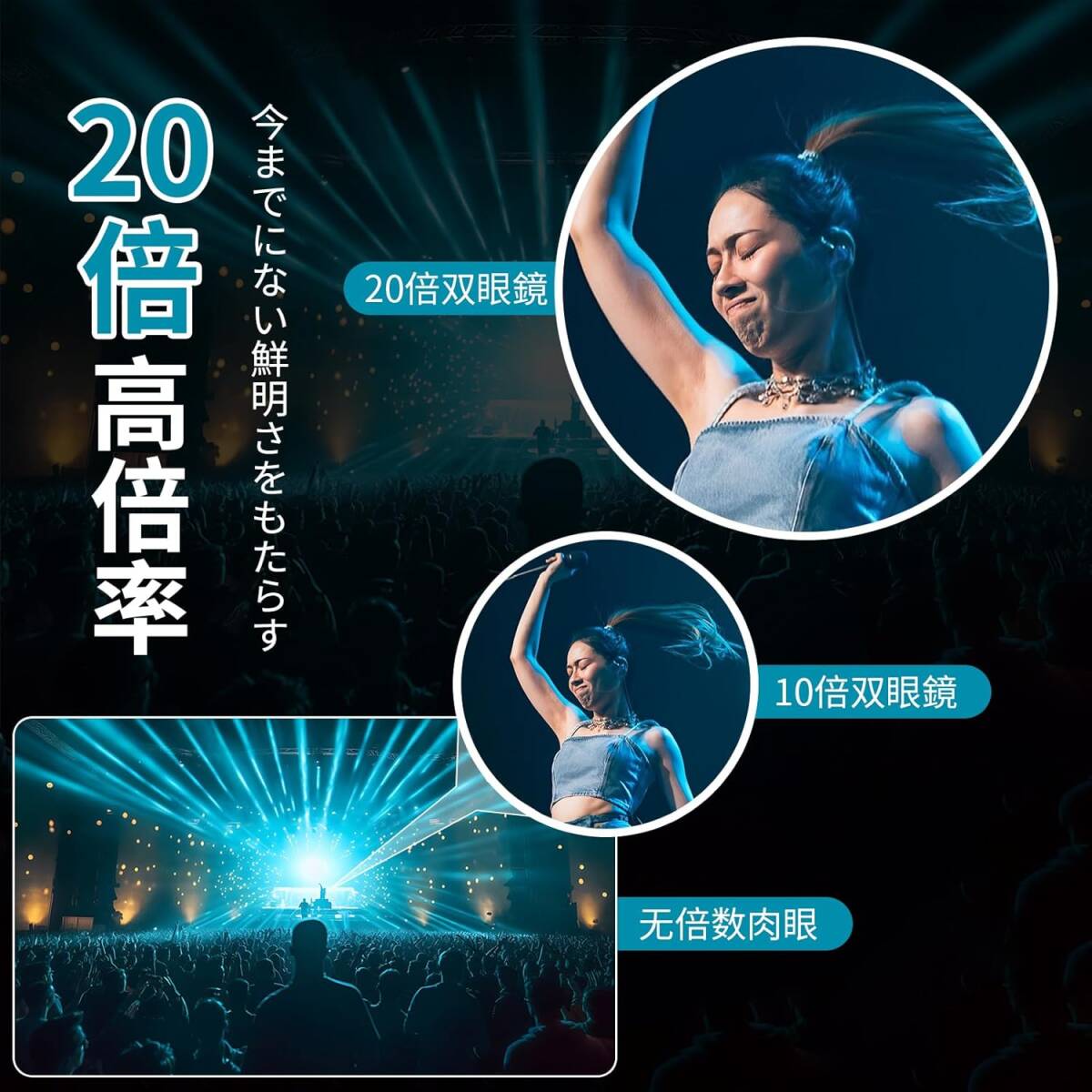 • 【多様なシーンに対応】20倍変倍機能の搭載に加え、IPX4防水仕様を備え、様々なアウトドア環境での使用が可能です。コンサート会場、ハイキング、野生動物観察など、幅広いシーンでの活用を実現。