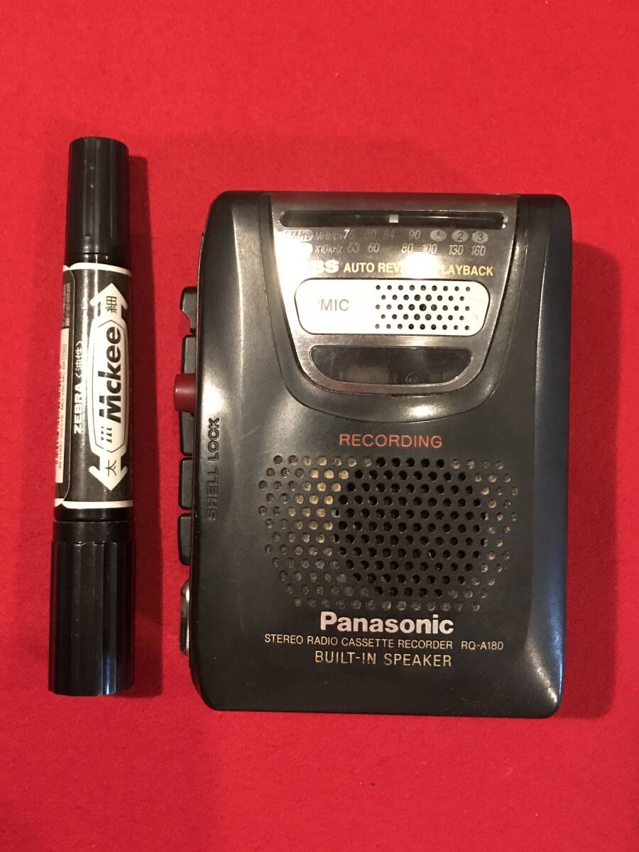 A9494●レトロ カセットレコーダー Panasonic パナソニック RQ-A180 STEREO RADIO CASSETTE RECORDER 約9×12×4㎝ ジャンク品 キズ汚れなどあり。