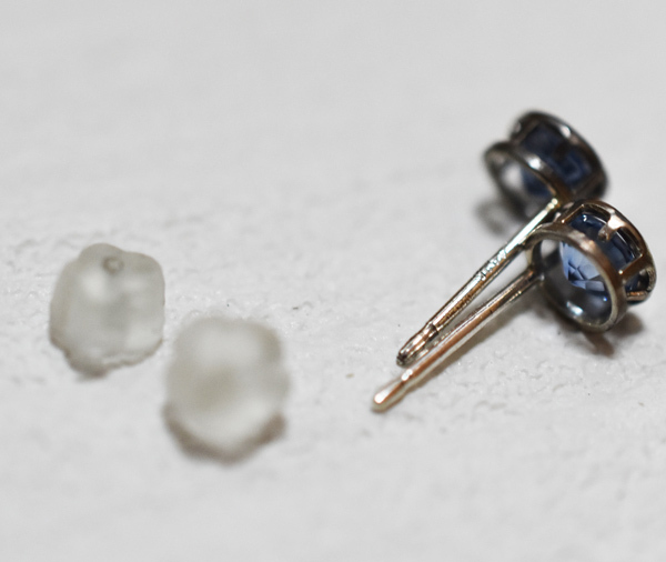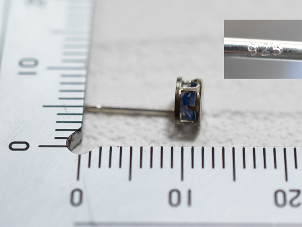 こちら天然石、カイヤナイトを使用したスタッドピアスになります。