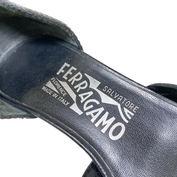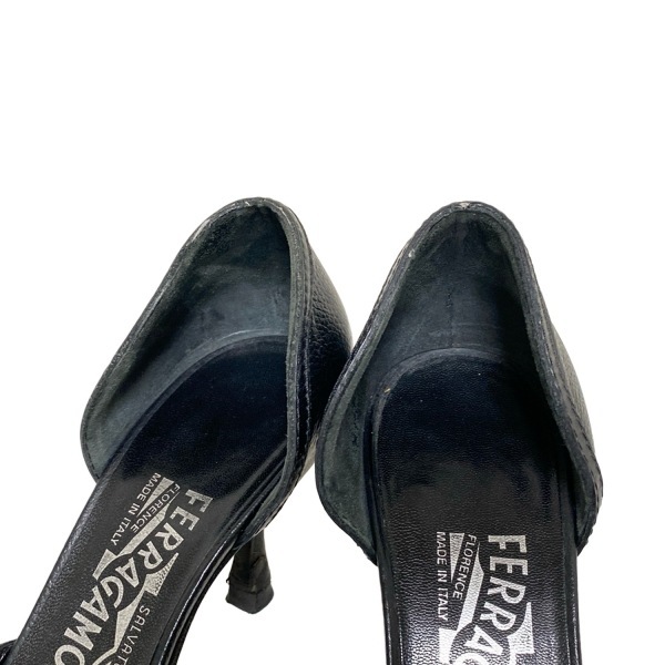 サルバトーレフェラガモ FERRAGAMO/SalvatoreFerragamo パンプス 5C - レザー 黒 レディース オープントゥ/アウトソール張替済 靴