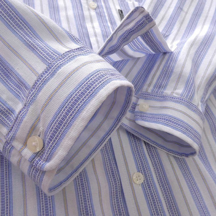 ・サラッとした薄手の生地感で、汗をかいてもベタつきにくく爽やかで快適な状態を保ちます。 ・多色の色彩鮮やかなマルチカラーのストライプ柄が、春夏シーズンにオススメの一枚。 ・ボタンダウンカラー、左胸ポケットあり、七分袖仕様です。 |