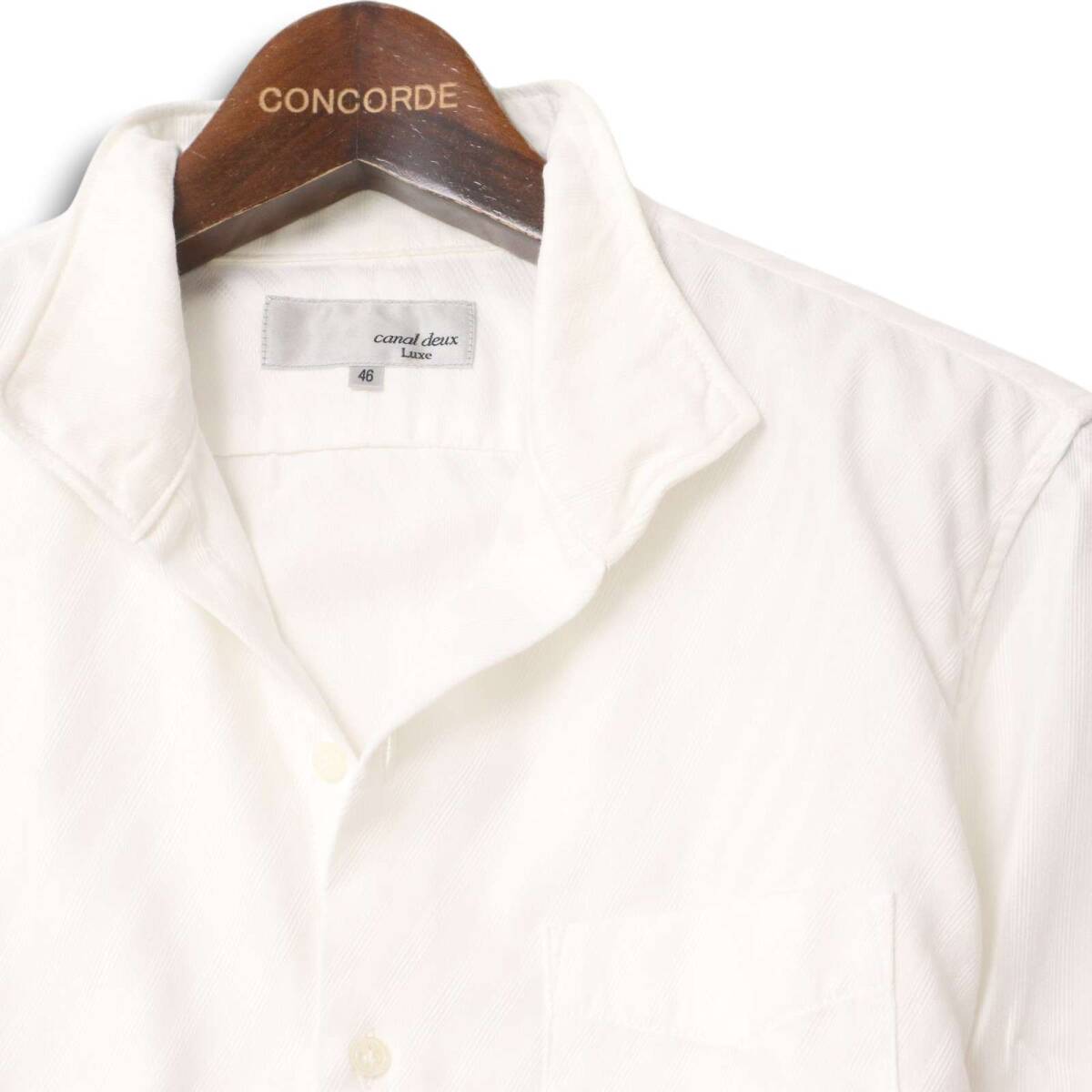 canal deux luxe ニコルクラブ フォーメン 春夏 襟ワイヤー★ ストライプ 7分袖 シャツ Sz.46 メンズ 白