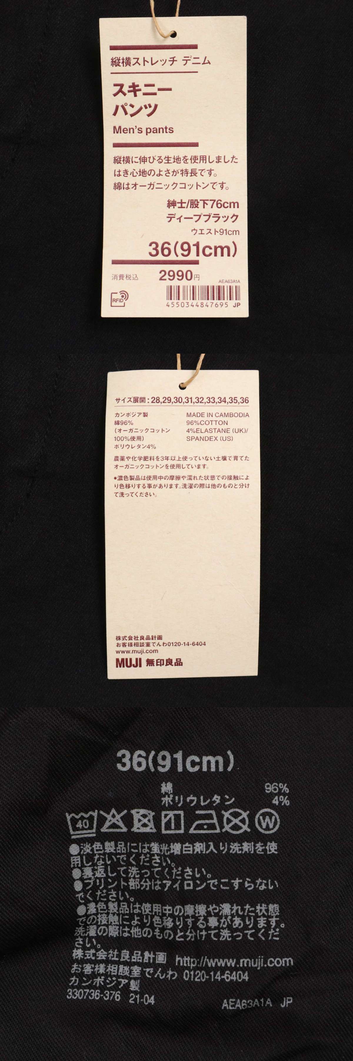【新品 未使用】 MUJI 無印良品 通年 縦横ストレッチ★ スキニー デニム パンツ ジーンズ Sz.36 メンズ 黒 大きいサイズ