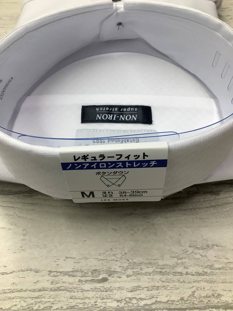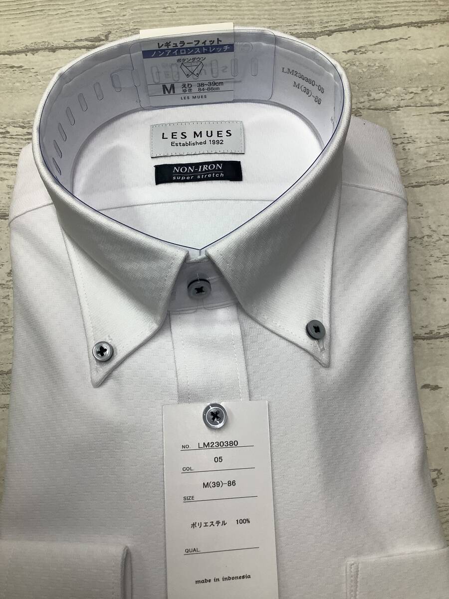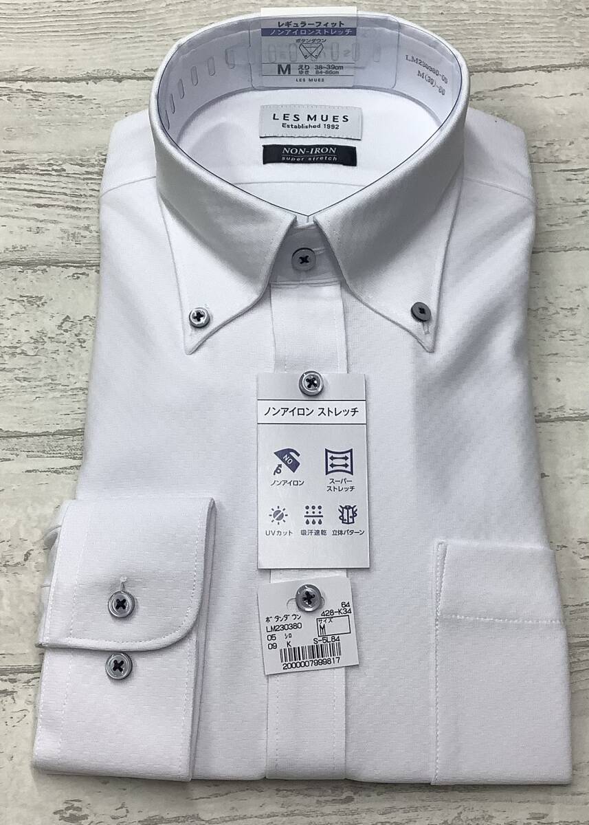 39-86 長袖Mサイズ ★ボタンダウンカラードレスシャツ ポリエステル100% スーパーストレッチ素材  ★白市松模様柄ジャガード生地