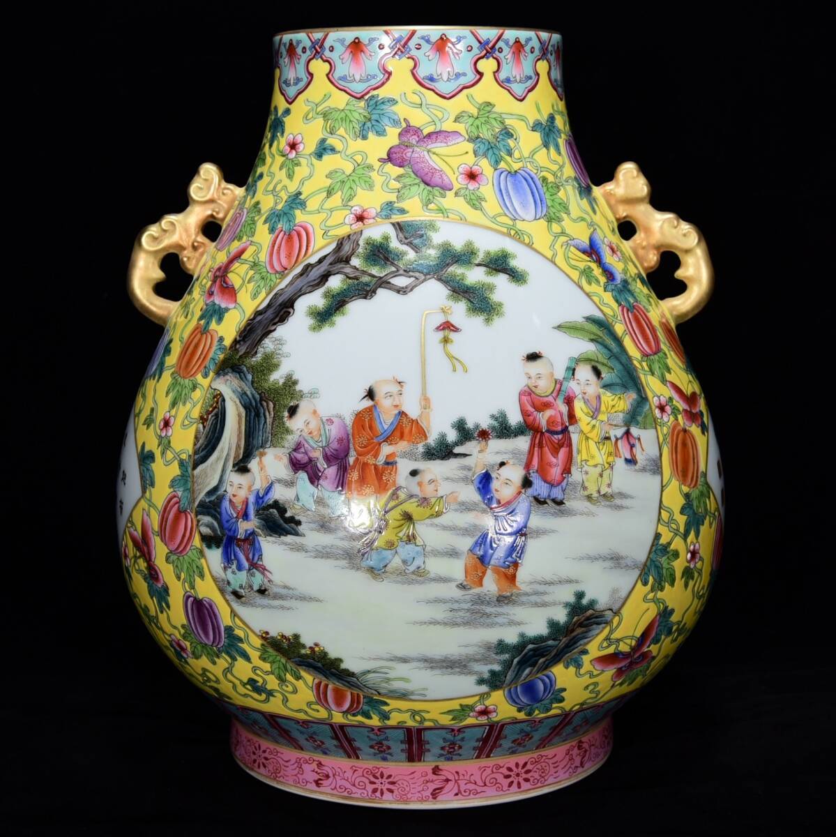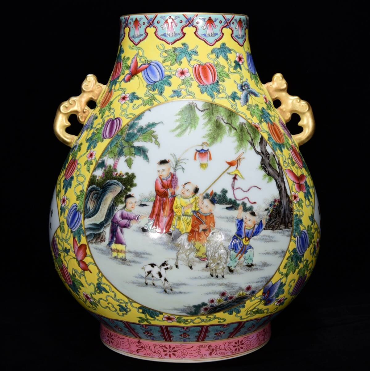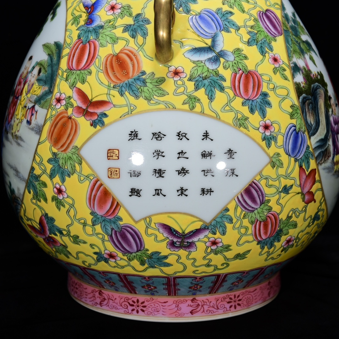 商品名 ■LH203■大清雍正年制銘 粉彩描金嬰戯図紋如意尊 時代物 古玩 唐物 古陶磁器■