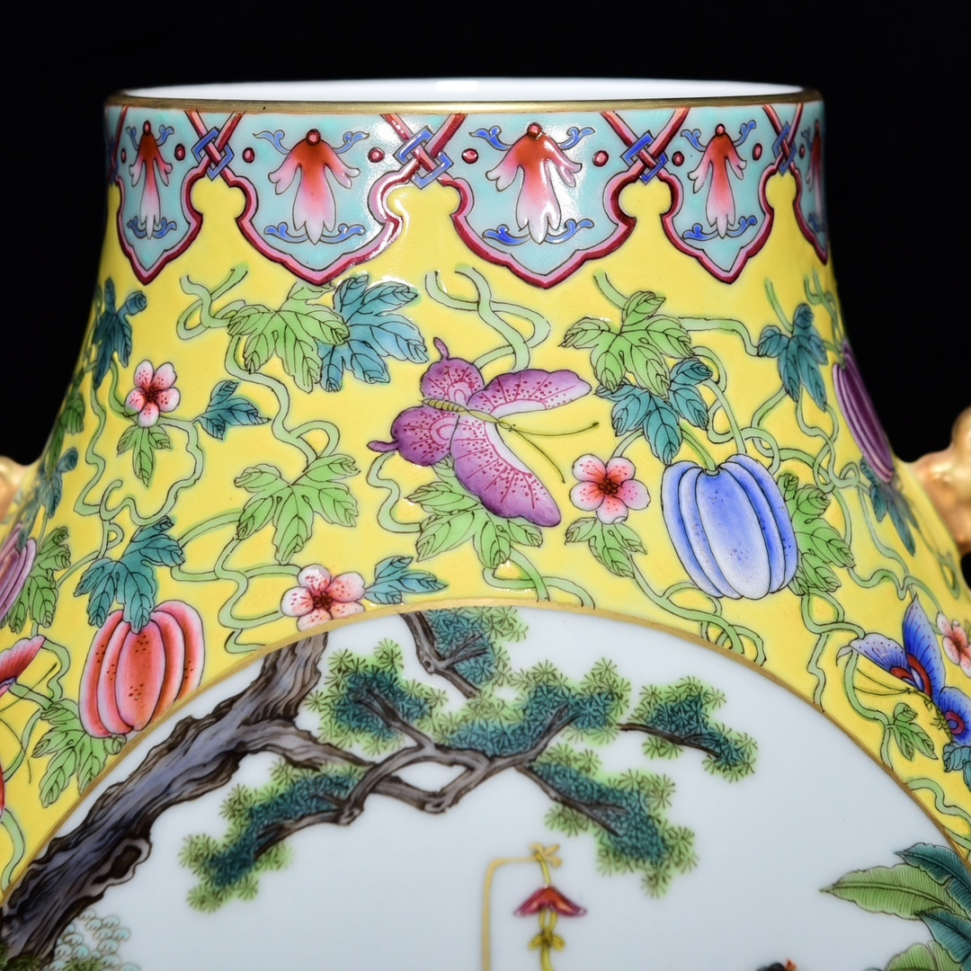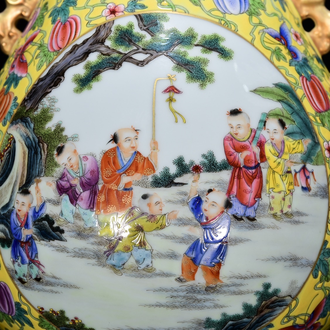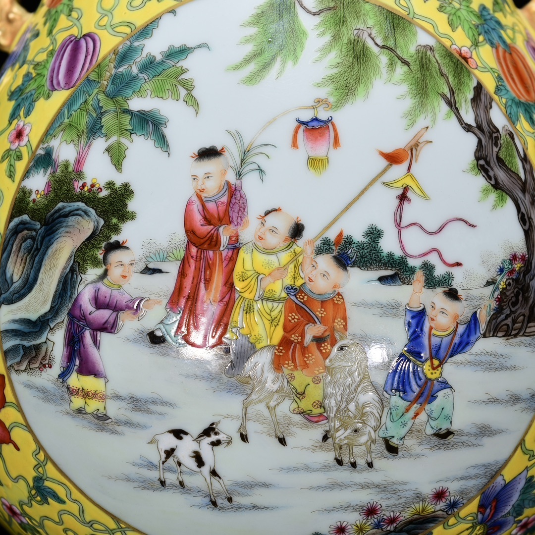 商品名 ■LH203■大清雍正年制銘 粉彩描金嬰戯図紋如意尊 時代物 古玩 唐物 古陶磁器■