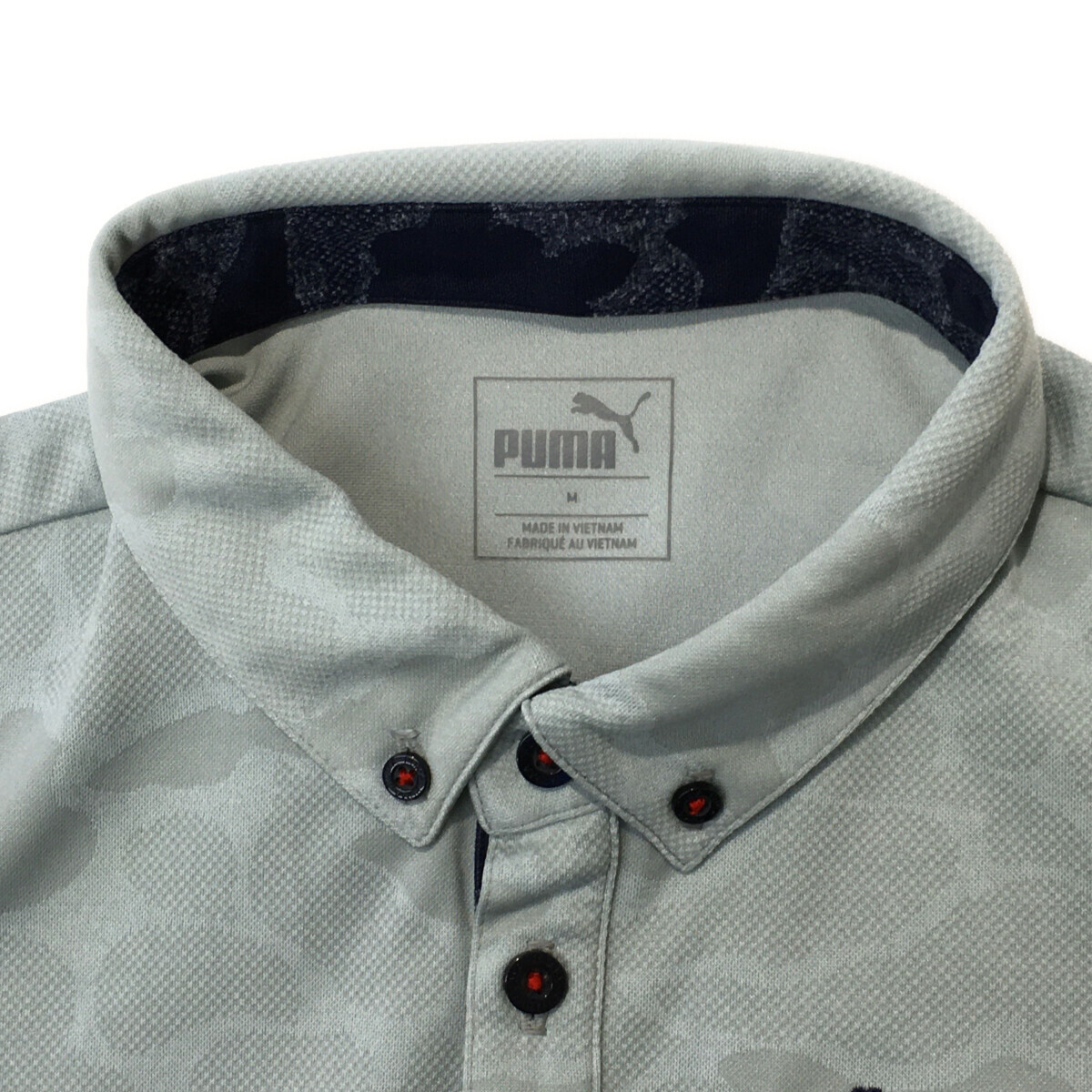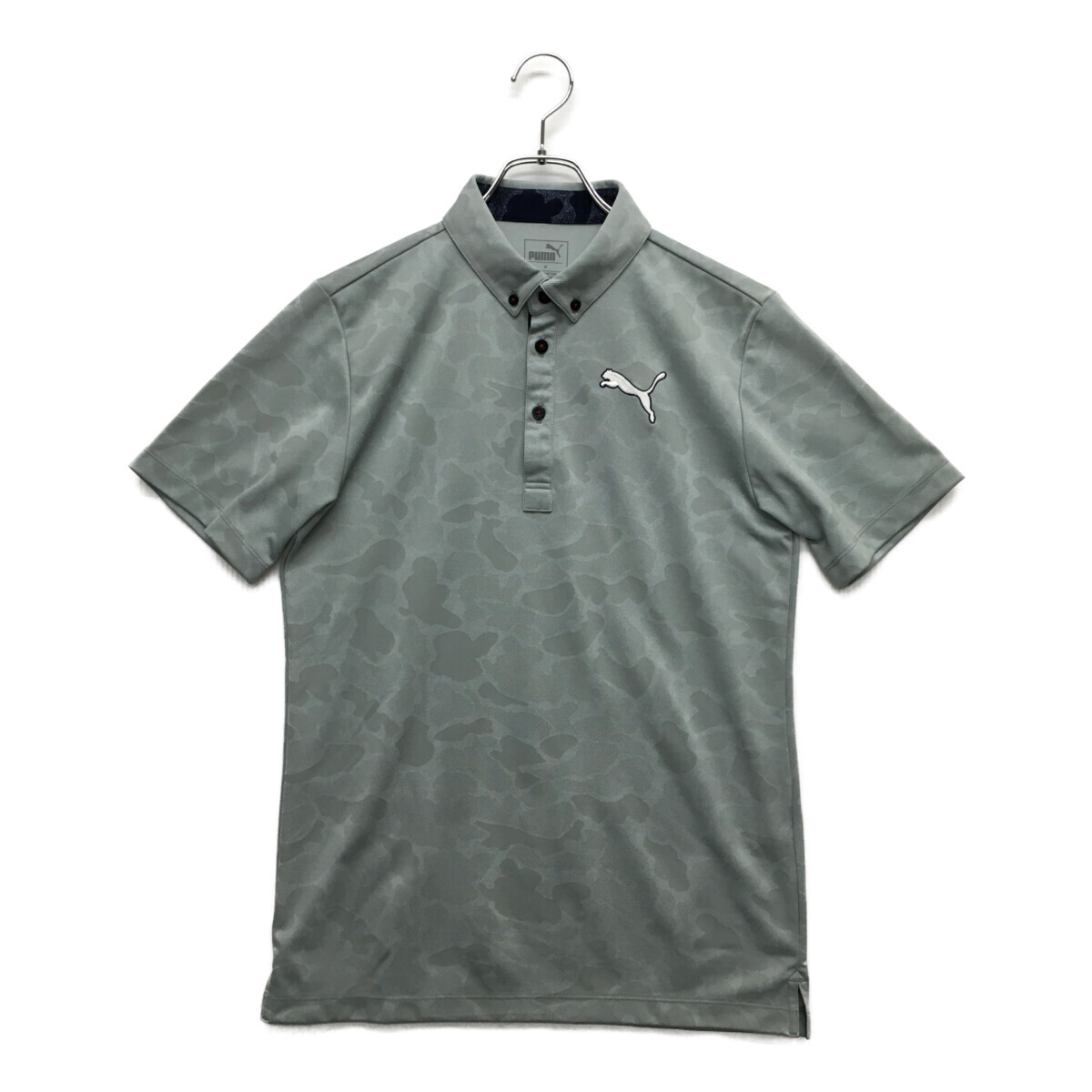 coco 中古【値下げ】 プーマ PUMA メンズ 半袖ポロシャツ M グレー ボタンダウン 総柄 レターパックプラス発送可 92709