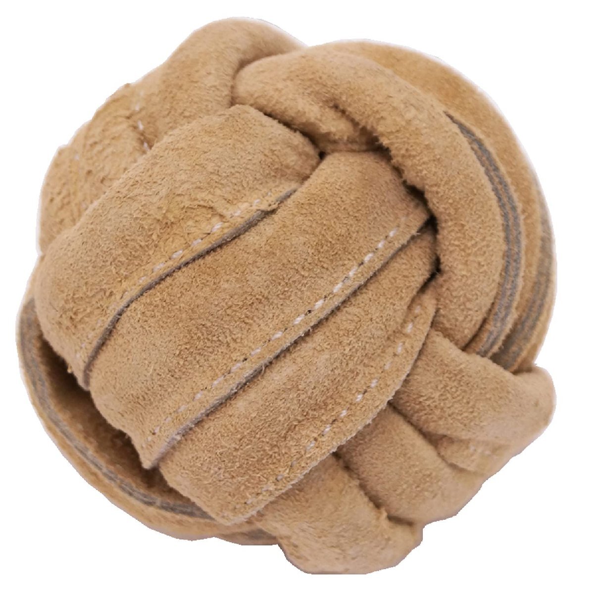 ブランド:ドギーマン商品紹介・コットンの心材を牛革で包み込んで作ったロープを編んで結んで作った小型犬用おもちゃ。・牛革特有の香りと歯ごたえは獲物そのもの。天然素材による独特の弾力と噛み心地が犬の本能を刺激する。・牛革の香りに誘われてガシガシ噛んでも壊れにくい丈夫なおもちゃ。・噛みごたえがあるハードタイプ。ガシガシかじってデンタルケア玩具としても使える。・投げて持ってこさせたり、転がして遊べる人気のボール型。直径約8cm。使用方法●においを嗅がせたり、音を鳴らしたりして興味を持たせてから、そのまま噛ませて遊ばせます。●興味を持ちはじめたら軽く投げて取りに行かせ、「持ってこい」を覚えさせましょう。投げたおもちゃをくわえて戻ってきたら、ほめてあげましょう。●強く興奮してきたら、おもちゃを取り上げましょう。・コットンの心材を牛革で包み込んで作ったロープを編んで結んで作った小型犬用おもちゃ。