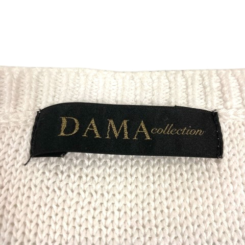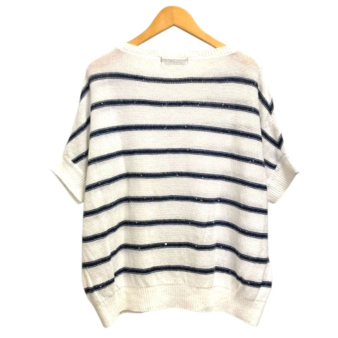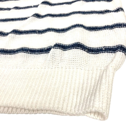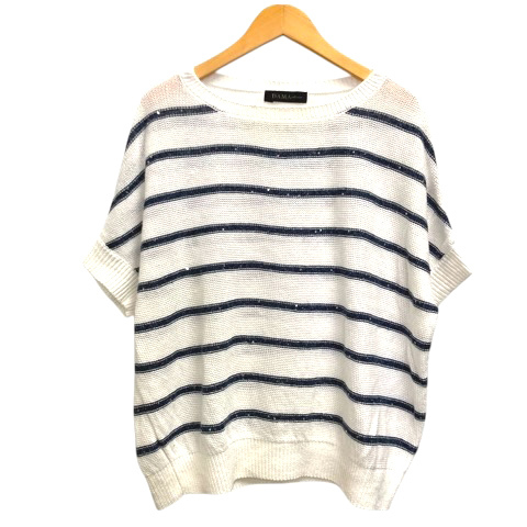 ダーマコレクション dama collection カットソー ニットソー ボーダー スパンコール リネン混 2 白 ホワイト 紺 ネイビー レディース