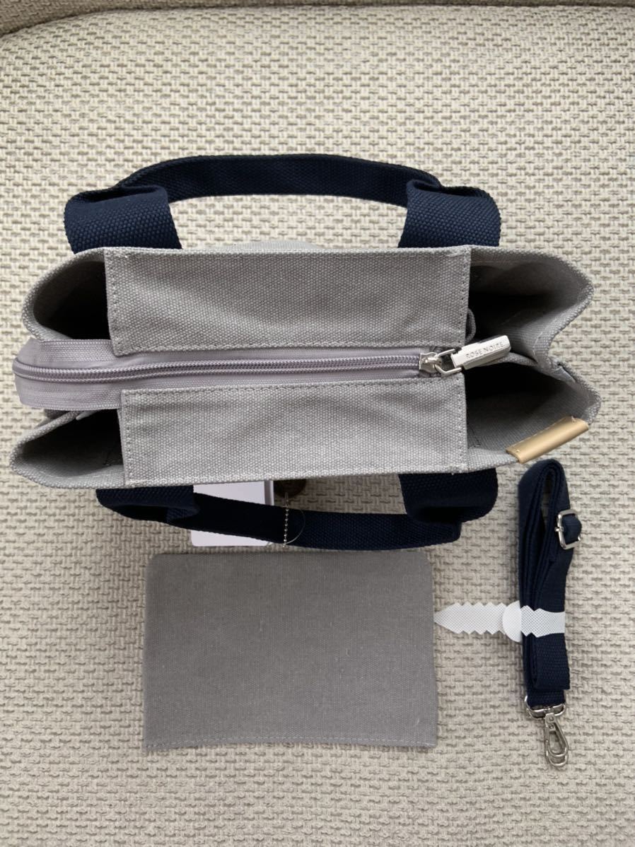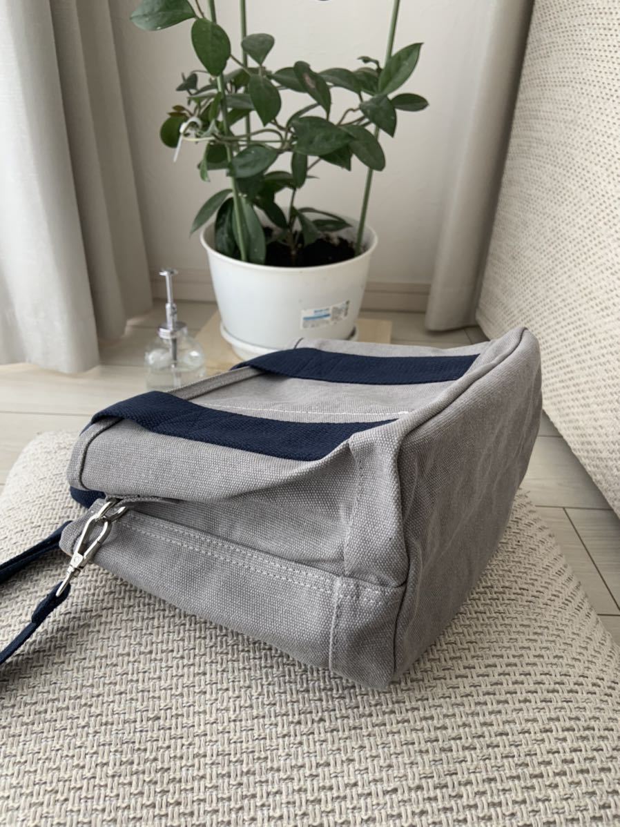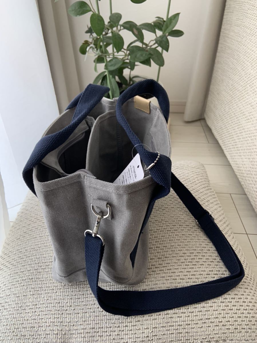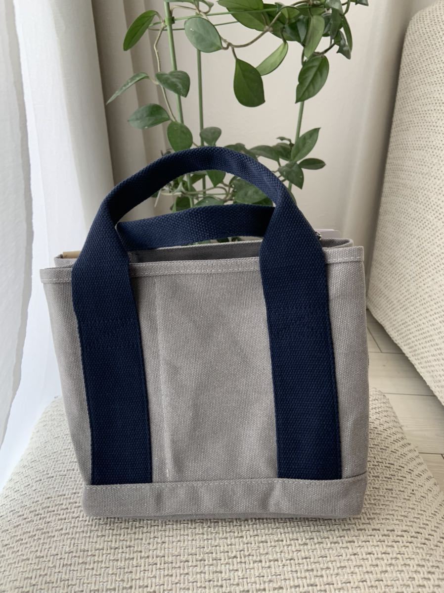 ミニトートバッグ 2way キャンバス 3仕切り ショルダートートバッグ 小さめ グレーxネイビー