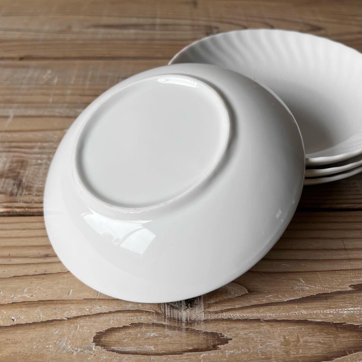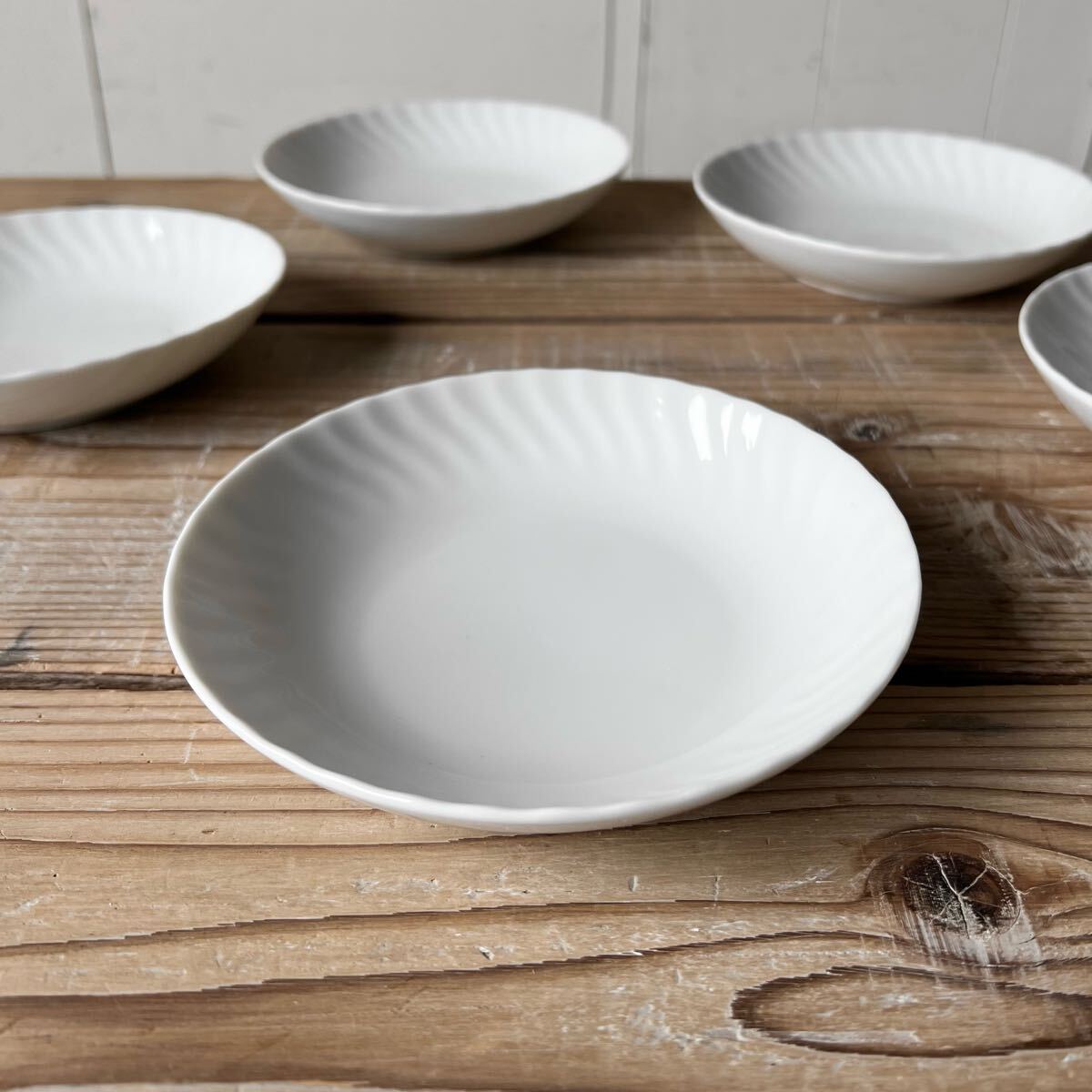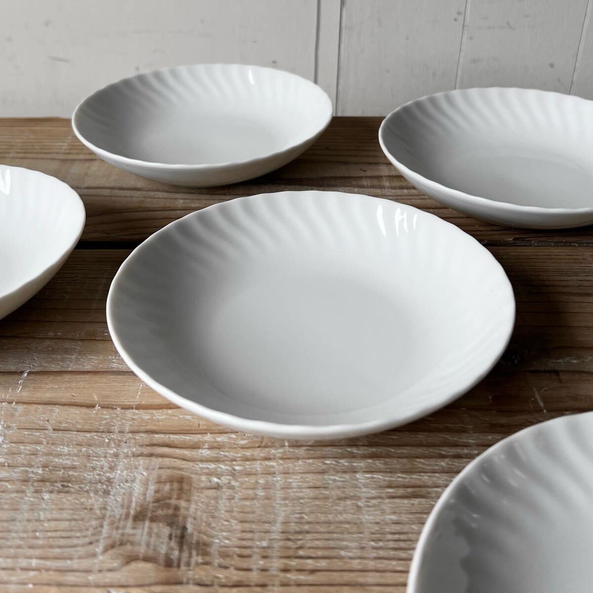 5枚set φ14cm 細波ボウル 小プレート デッドストック 陶器 白磁 検: 取り皿 小皿 サラダ 銘銘皿 レトロ ビンテージ アンティーク 洋食器